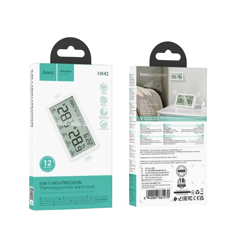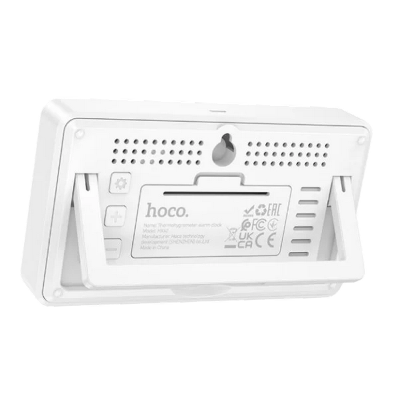 Hoco HX42 indoor electronic alarm clock thermometer and hygrometer, White