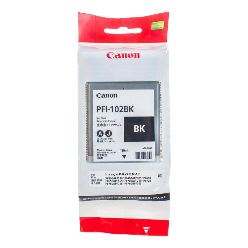 Ink Cartridge Canon PFI-102Bk black - 130ml for iPF500,510,600,605,610,650,655,700,710,720,750,755,760,765