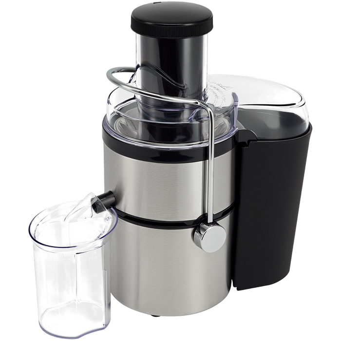 , 900W power output, juice collection container 0.4l removable pulp container 1.25l, feeding tube (65 mm), 2 speeds, stainless steel