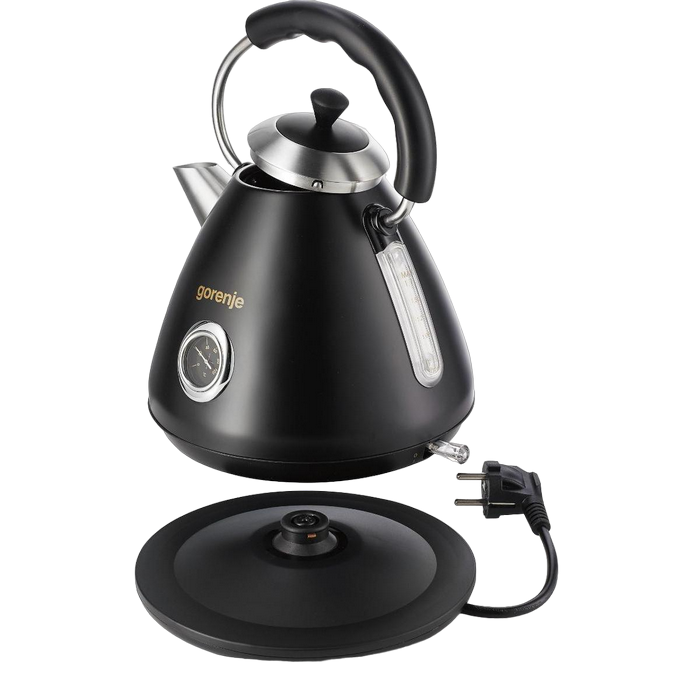 , Stainless steel, 2200W, 1,7l, concealed heating element, 360° swivel base, Retro black