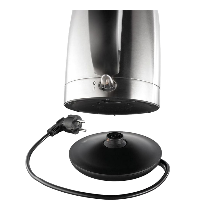 . Stainless steel, 2200W, 1,7l concealed heating element, 360° swivel base, inox