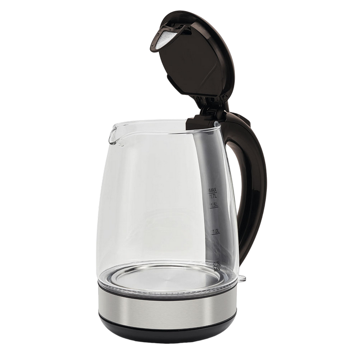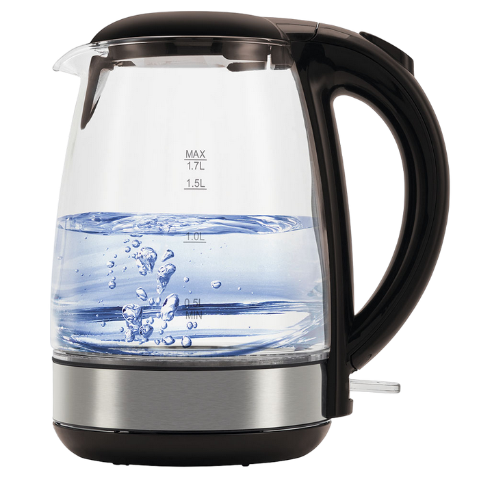 , Glass, 2200W, 1,7l, concealed heating element, 360° swivel base, black