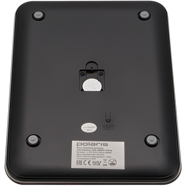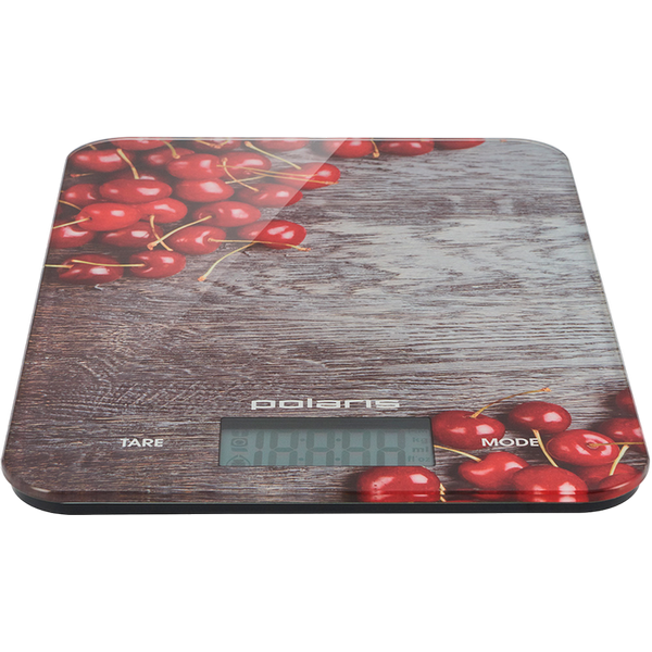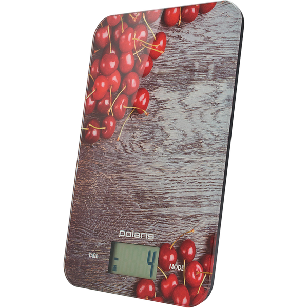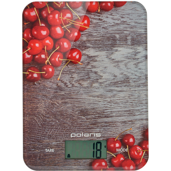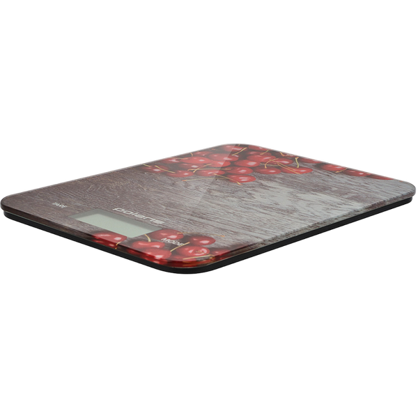 , Glass platform, round, max 10kg, LCD display, batteries 1х CR2032, colourful (cherry)