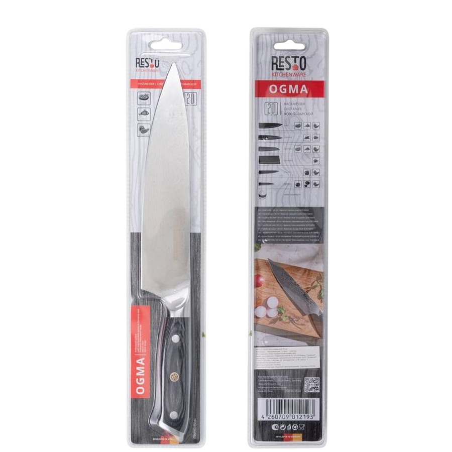 Tip cuțit: Cuțit de bucătar Material lama: Oțel inoxidabil Material mâner: Bachelită Lungime lama: 19 cm cm Colectie: Ogma Numărul de piese în set: 1