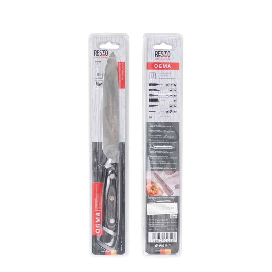 Tip cuțit: Cuțit Universal Material lama: Oțel inoxidabil Material mâner: Bachelită Lungime lama: 13 cm Colectie: Ogma Numărul de piese în set: 1