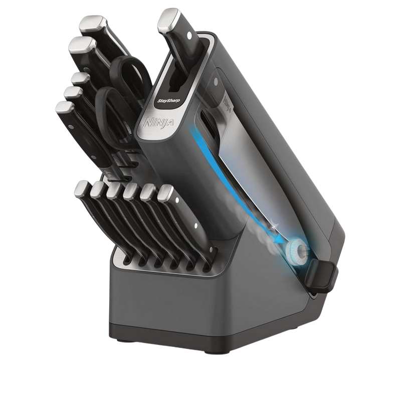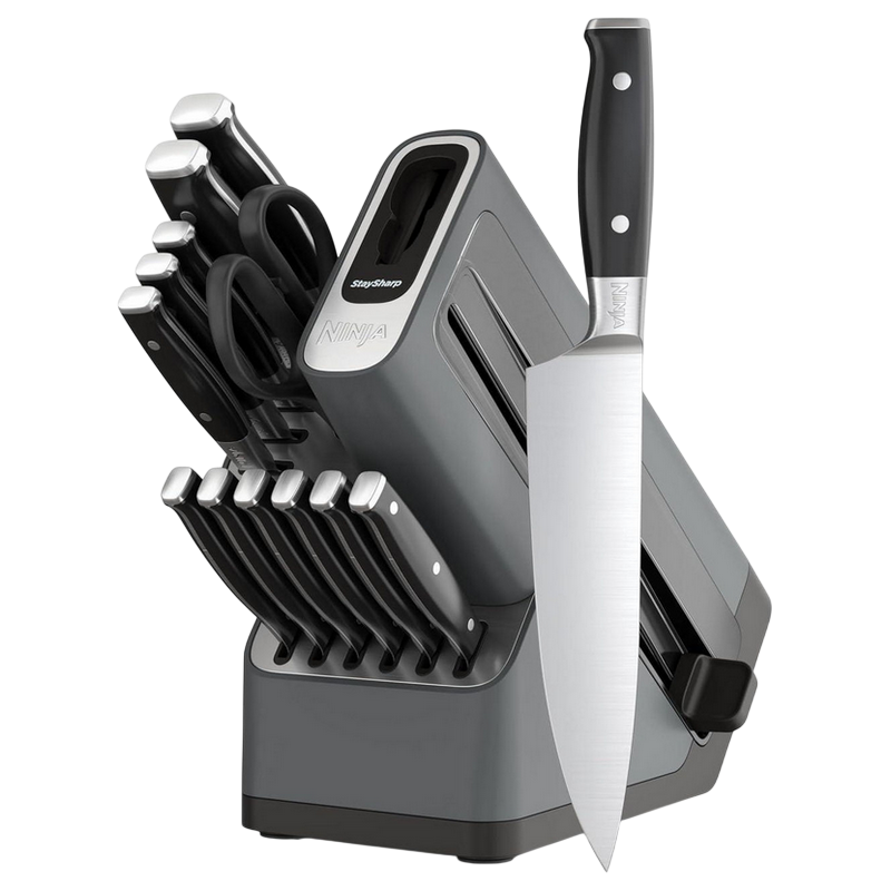 Tip cuțit: Set de Cuțite Material lama: Oțel inoxidabil Lungime lama: cm Colectie: StaySharp Numărul de piese în set: 14 Set: Cuțit de bucătar, cuțit de pâine, cuțit de feliat, cuțit de carne, cuțit utilitar, cuțit de curățat legume și fructe, foarfece de bucătărie, cuțite de friptură