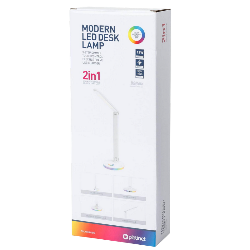 Lampa Led Platinet PDL400RGB Desk Lamp RGB 12W with Charging Port White (PDL400RGBW)