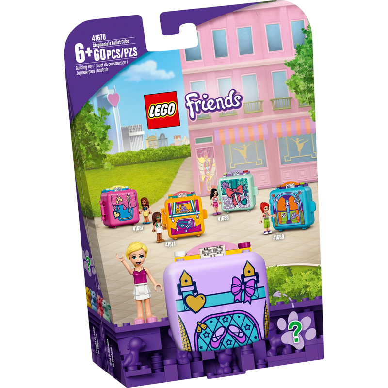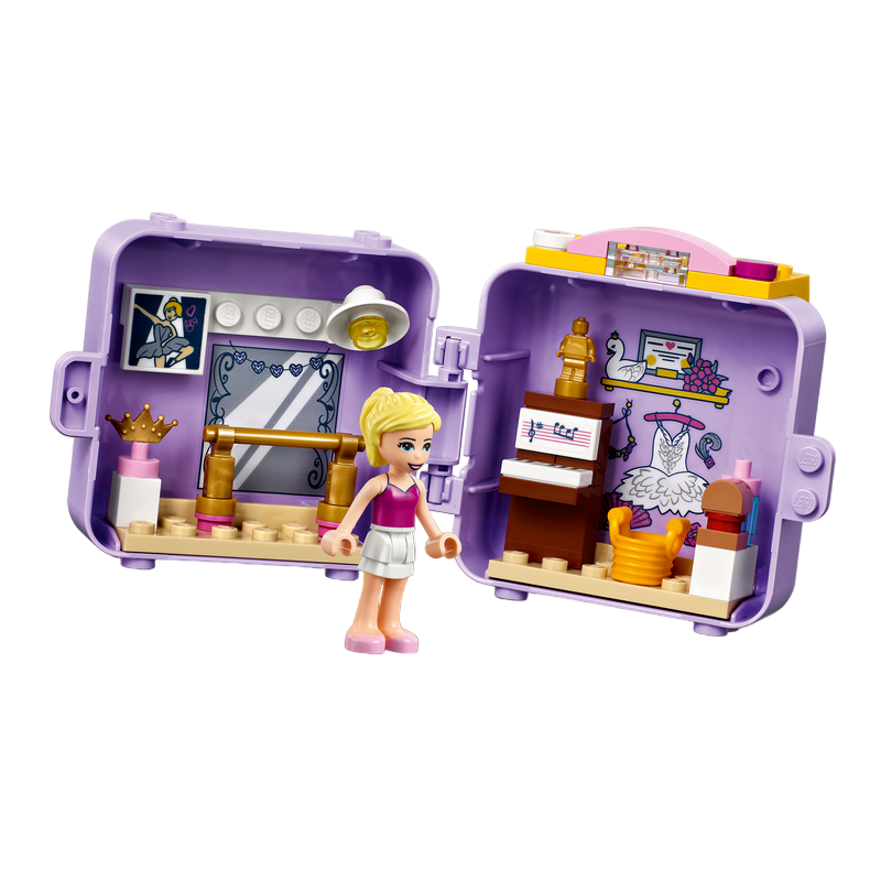 „Cubul de balet al lui Stephanie” Include o jucărie mini-păpușă și o jucărie de iepure pentru copii în 1 din 4 culori aleatorii, plus o mulțime de truse creative, inclusiv bară, pian, oglindă, trofeu și coroană Vârsta recomandată: 6+ Număr de piese: 60 Piese