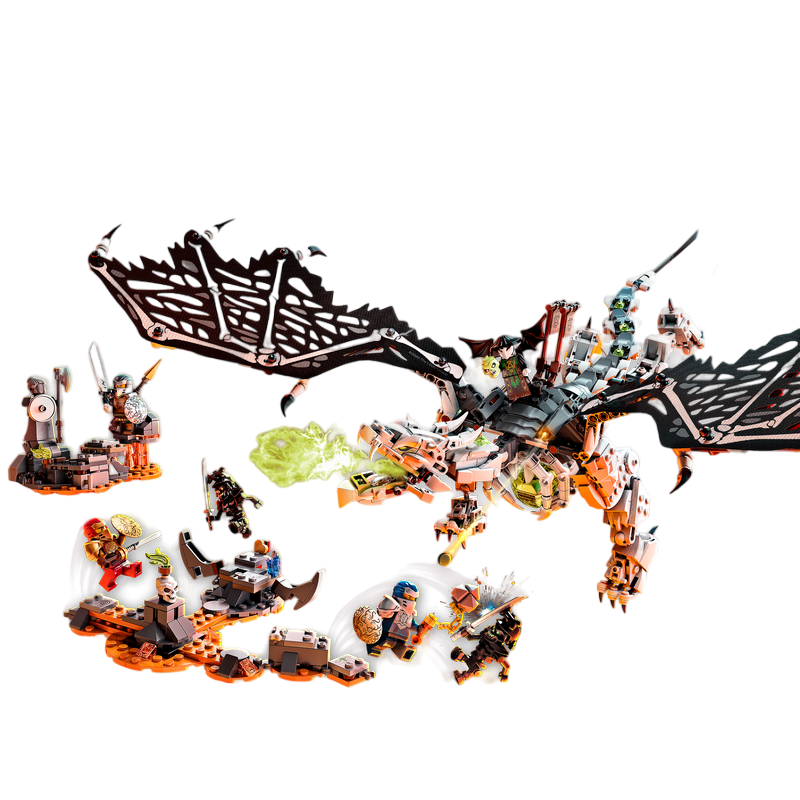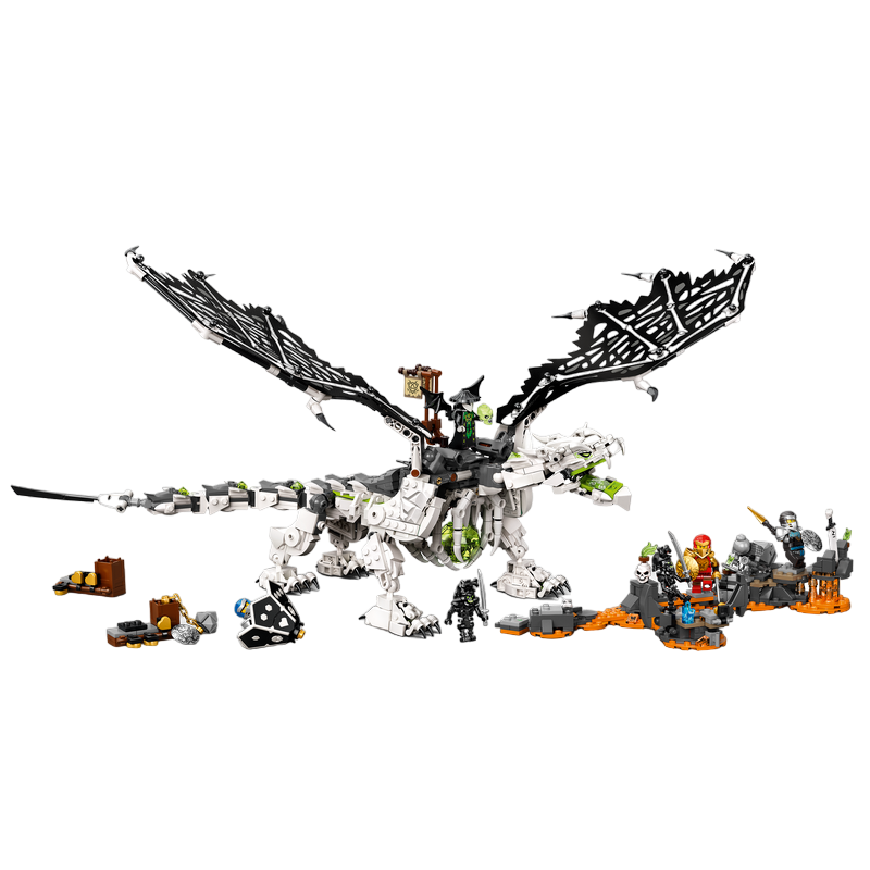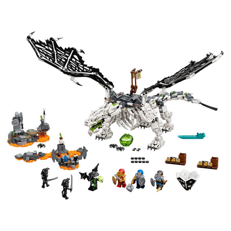 „Dragonul vrăjitorului craniu” Set de joacă ninja detaliat cu o jucărie dragon NINJAGO® și 6 minifigurine: Hero Jay, Hero Kai, Hero Nya, Skull Sorcerer și 2 Awakened Warriors Vârsta recomandată: 9+ Număr de piese: 1016 Piese