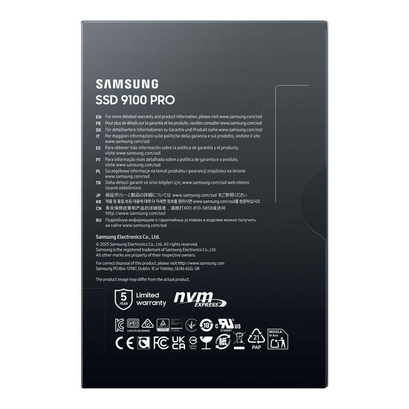 .M.2 NVMe SSD 1.0TB Samsung 9100 PRO "MZ-VAP1T0BW" [PCIe 5.0 x4, R/W:14700/13300MB/s, 1850K/2600K IOPS, 600TB, 3DTLC]