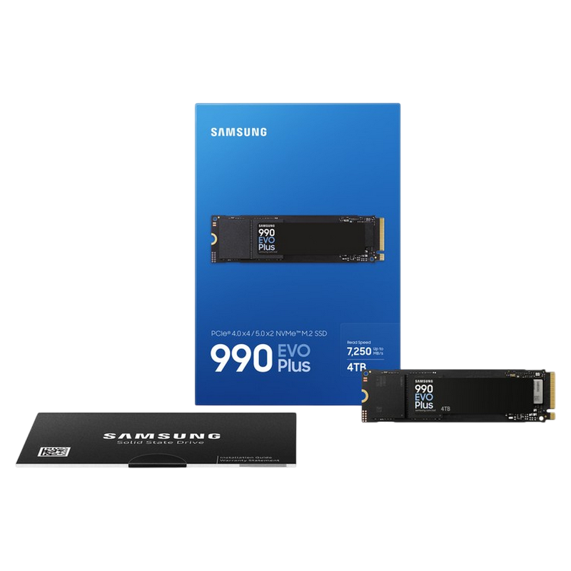 .M.2 NVMe SSD 4.0TB Samsung 990 EVO Plus MZ-V9S4T0BW [PCIe 4.0 x4/5.0 x2, R/W:7250/6300MB/s, 1050K/1400K IOPS, 2.4PB, TLC]
