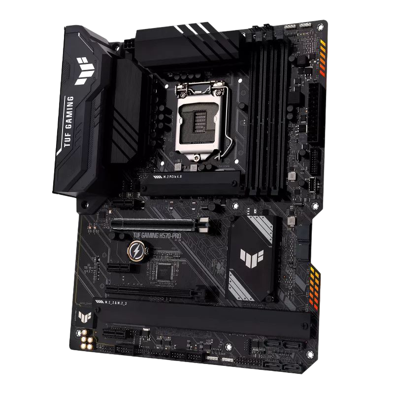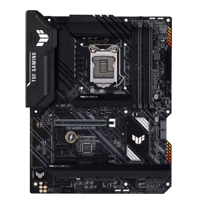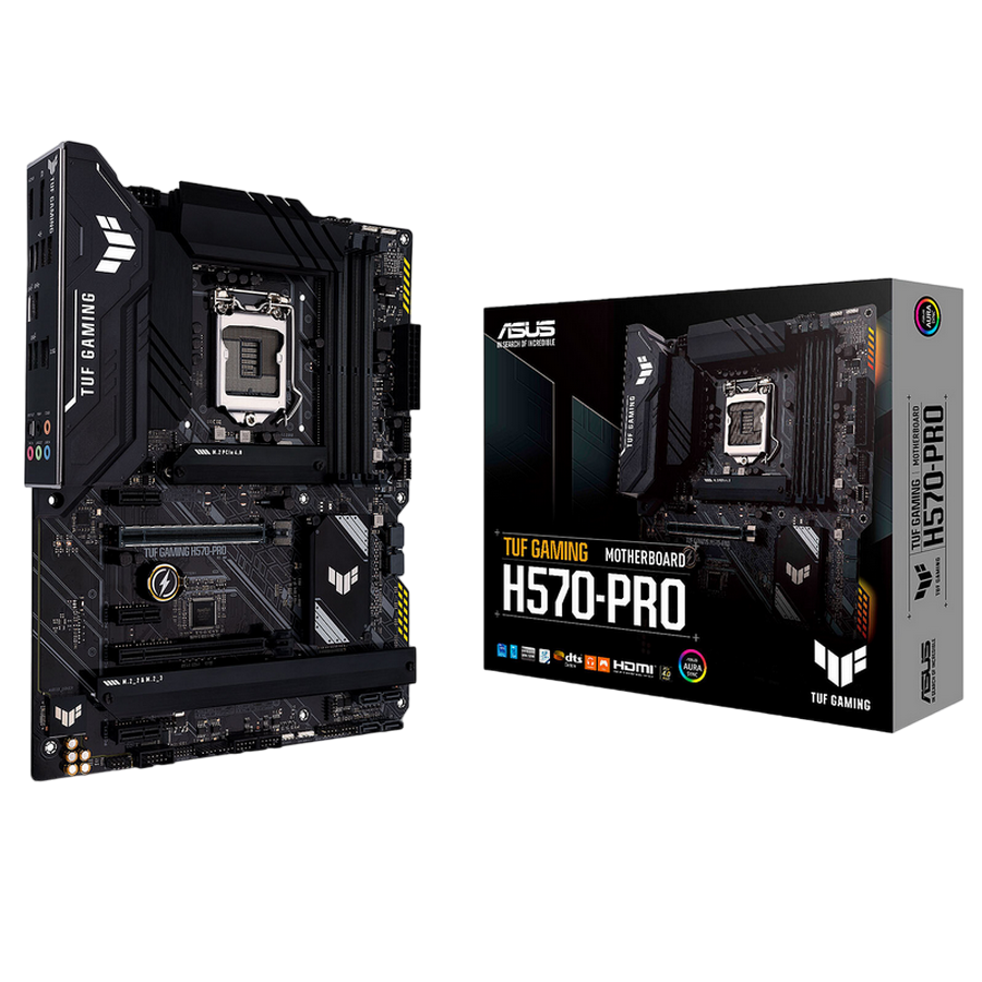 // CPU - Intel® Socket LGA1200 for 11th Gen Intel® Core™ processors & 10th Gen Intel® Core™, Pentium® Gold and Celeron® Processors Chipset - Intel® H570 Memory 4 x DIMM, Max. 128GB, DDR4 5000(OC)/4800(OC)/4700(OC)/4600(OC)/4500(OC)/4400(OC) /4266(OC)/4133(OC)/4000(OC)/3866(OC)/3733(OC)/3600(OC)/3466(OC)/3400(OC)/3333(OC)/3200/3000/2933/2800/2666/2400/2133 MHz Non-ECC, Un-buffered Memory* Dual Channel Memory Architecture Graphic Integrated Graphics Processor 1 x DisplayPort 1.4** Expansion Slots 1 x PCIe 4.0/3.0 x16 slot* 1 x PCIe 3.0 x16 slot (supports x4 mode) 3 x PCIe 3.0 x1 slots Storage Total supports 3 x M.2 slots and 6 x SATA 6Gb/s ports M.2_1 slot (Key M), type 2242/2260/2280 - Only Intel® 11th gen processors support PCIe 4.0 x4 mode, this slot will be disabled for other CPUs M.2_2 slot (Key M), type 2242/2260/2280/22110 (supports PCIe 3.0 x4 & SATA modes)*** M.2_3 slot (Key M), type 2242/2260/2280 (supports PCIe 3.0 x4 mode) 6 x SATA 6Gb/s ports LAN 1 x Realtek 2.5Gb Ethernet Audio Realtek® ALC S1200A 7.1 Surround Sound High Definition Audio CODEC - Optical S/PDIF out port(s) at back panel USB Ports Rear USB:Total 8 ports 1 x USB 3.2 Gen 2x2 port (1 x USB Type-C®) 2 x USB 3.2 Gen 2 ports (2 x Type-A) 1 x USB 3.2 Gen 1 port (1 x Type-A) 4 x USB 2.0 ports (4 x Type-A) Front USB:Total 7 ports 1 x USB 3.2 Gen 1 connector (suppports USB Type-C®) 1 x USB 3.2 Gen 1 header supports additional 2 USB 3.2 Gen 1 ports 2 x USB 2.0 headers support additional 4 USB 2.0 ports https://www.asus.com/Motherboards-Components/Motherboards/TUF-Gaming/TUF-GAMING-H570-PRO/