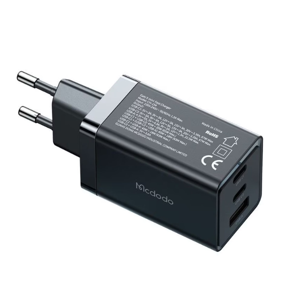 Mcdodo CH-1540 este un incarcator ultra-compact echipat cu tehnologia GaN (galiu-nitrat), oferind performante ridicate intr-un format redus. Cu o putere totala de pana la 65W si 3 porturi de incarcare (2x USB Type-C si 1x USB-A), acest incarcator este ideal pentru alimentarea rapida a telefoanelor, tabletelor, laptopurilor si altor dispozitive inteligente, atat acasa cat si in calatorii.