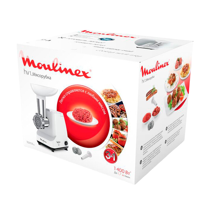 , 1400W power output, 2 perforated discs , sausage and kebbe stuffers, grinding speed 1.7 kg/min, white