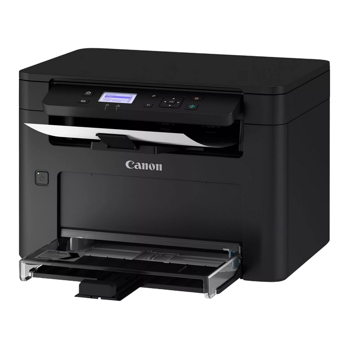 MFD A4 ADF: NO Machine Type: Monochrome laser beam printing Print, copy, scan Print Speed: Single sided: Up to 29 ppm (A4) Double sided: Up to 18.5 ipm (A4) Print Resolution: Up to 2400 equivalent x 600 dpi Warm-up Time: Approx. 7.5 seconds or less from power on First-Print-Out Time: Approx: 5.4 seconds or less (400dpi) Approx: 7.1 seconds or less (600dpi) Printer Languages: UFRII Print Margins: 5 mm-top, bottom, left and right Toner Saver Mode: Yes Copy Speed: Single sided: Up to 29 ppm (A4) Double sided: Up to 18.5 ipm (A4) First-Copy-Out Time: 7.6 seconds or less Copy Resolution: Up to 600 x 600 dpi Copy Modes: Text/Photo, Text/Photo (High speed), Photo, Text Double Sided Copying: 1-sided to 2-sided (Automatic) Multiple Copies: Up to 999 copies Reduction / Enlargement: 25-400% in 1% increments Other Features: Collate Copies, 2 on 1, 4 on 1, ID card copy, Passport copy Scan Specifications Standard Type: Flatbed, Colour Scan Resolution: Optical: Up to 600 x 600 dpi, Enhanced: Up to 9600 x 9600 dpi Scan Speed: Platen: Single sided mono: 2.7 sec/page (300x600dpi) Single sided colour: 3.5 sec/page (300x300dpi) Colour Scanning Depth: 24 bit/24 bit (input/output) Greyscales: 256 levels Compatibility: TWAIN , WIA Maximum Scan Width: 216mm Scan to PC: JPEG (single page only) Scan to Cloud: TIFF/JPEG/PDF/PNG Paper Input (Standard): 150-sheet cassette, 1-sheet multi-purpose tray Maximum Paper Input Capacity: 151 sheets Paper Output: 50-sheet Media Weights: Cassette: 60 to 163 g/m² Processor Speed: 1200MHz Memory: 256MB Control Panel: 5 lines B&W LCD Interface: USB 2.0 Hi-Speed, 10BASE-T/100BASE-TX, Wireless 802.11b/g/n, Wireless Direct Connection Recommended Monthly Print Volume: 150 - 2,000 pages per month Duty Cycle: Max. 20,000 pages per month Cartridges: Cartridge 071 (1,200 pages) Cartridge 071H (2,500 pages ) Printer ships with Starter Cartridge (700 pages)