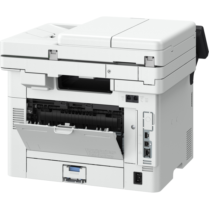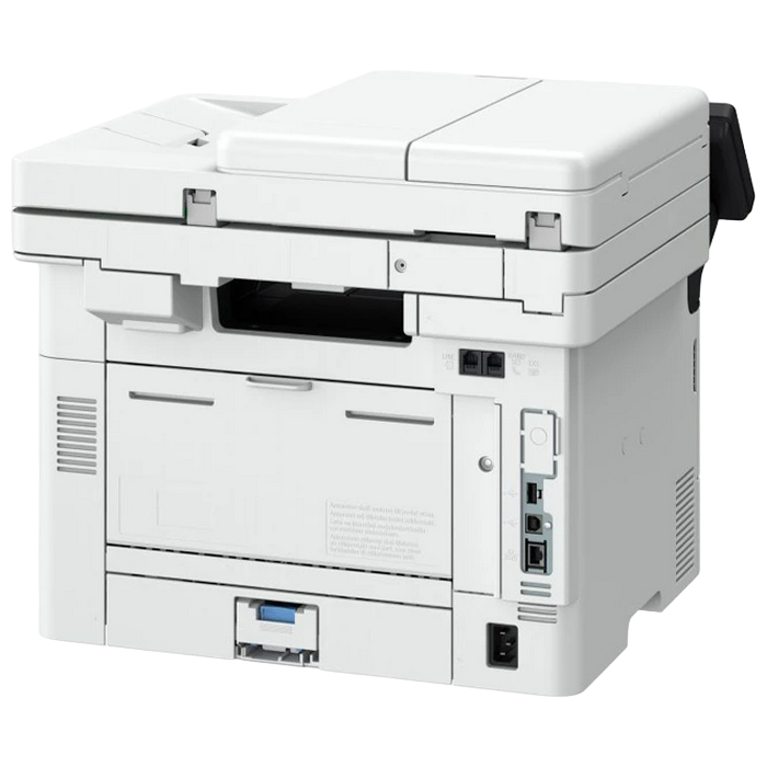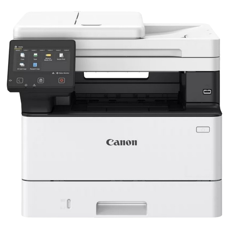 MFD, A4, 36ppm, DADF, USB, Ethernet, WiFi Available Functions: Print, Copy and Scan Print Speed: Single sided : Up to 36 ppm (A4); Up to 58.8 ppm(A5-Landscape) Double sided : Up to 30.2 ipm (A4) Printing Method: Monochrome laser beam printing Print Resolution: Up to 1200 x 1200 dpi Warm-up Time: Approx. 14 seconds or less from power on First-Print-Out Time: Approx: 5.0 seconds or less Printer Languages: UFRII, PCL 5e, PCL6, Adobe® PostScript3 Fonts: 45 PCL fonts, 136 PostScript fonts Print Margins: 5 mm-top, bottom, left and right, 10 mm-top, bottom, left and right (Envelope) Toner Saver Mode: Yes Advanced Printing Features: Encrypted Secure Print, Secure Print, Print from USB memory key (JPEG/TIFF/PDF), Print from Cloud (Dropbox, GoogleDrive, OneDrive) (PDF/JPEG), Microsoft Universal Print,iOS: AirPrint, Canon PRINT Business app, Android; Mopria certified, Canon PRINT Business app, Canon Print Service Plug-in Copy Speed: Single sided (A4): Up to 36 ppm, Double sided (A4): Up to 30.2 ipm First-Copy-Out Time: Approx. 6.1 seconds or less Copy Resolution: Up to 600 x 600 dpi Copy Modes: Text, Text/Photo (Default),Text/Photo (High Quality), Photo Double Sided Copying: 2-sided to 2-sided (Automatic) Multiple Copies: Up to 999 copies Reduction / Enlargement: 25-400% in 1% increments Other Features: Frame Erase, Collate, 2 on 1, 4 on 1, ID card copy Standard Type: Colour Scan Resolution: Optical: Up to 600 x 600 dpi, Enhanced: Up to 9600 x 9600 dpi Scan Speed: Single sided mono: 50ipm (300x300dpi) Single sided colour: 40ipm (300x300dpi) Double sided mono: 100ipm (300x300dpi) Double sided colour: 80ipm (300x300dpi) Single sided mono: 40ipm (300x600dpi) Single sided colour: 20ipm (300x600dpi) Double sided mono: 80ipm (300x600dpi) Double sided colour: 40ipm (300x600dpi) Colour Scanning Depth: 24 bit/24 bit (input/output) Greyscales: 256 levels Compatibility: TWAIN , WIA, ICA Maximum Scan Width: 216mm Scan to E-mail, Scan to PC, Scan to USB Memory Key, Scan to FTP, Scan to Cloud, iFAX Scanner Type: Platen, 2-sided ADF (single pass) Paper Input (Standard):250-sheet cassette,100-sheet multi-purpose tray,50-sheet ADF Paper Input (Option):550-sheet cassette Maximum Paper Input Capacity:900 sheets Paper Output:150-sheet Media Types:Plain paper, Recycled paper, Heavy Paper, Thin paper, Label, Post card, Envelope Media Weights:Cassette (standard and optional): 60 to 120 g/m²,Multi-purpose tray: 60 to 199 g/m² ADF: 60 to 120 g/m² Double Sided Printing:A4, Legal, Letter, OFFICIO, B-OFFICIO, M-OFFICIO, GLGL, Foolscap Custom size - Min. 210 x 279.4 mm Max. 216.0 x 355.6 mm 60 to 120 g/m² Recommended Monthly Print Volume:750 - 4,000 pages per month Duty Cycle:Max. 80,000 pages per month Processor Speed:1200MHz Memory:1GB Storage:4GB eMMC Control Panel:12.7 cm LCD Colour Touch Screen Interface:USB 2.0 Hi-Speed, 10BASE-T/100BASE-TX/1000Base-T, Wireless 802.11b/g/n, Wireless Direct Connection Cartridges:Cartridge 070 (3,000 pages),Cartridge 070H (10,200 pages) Printer ships with Cartridge 070 (3,000 pages)