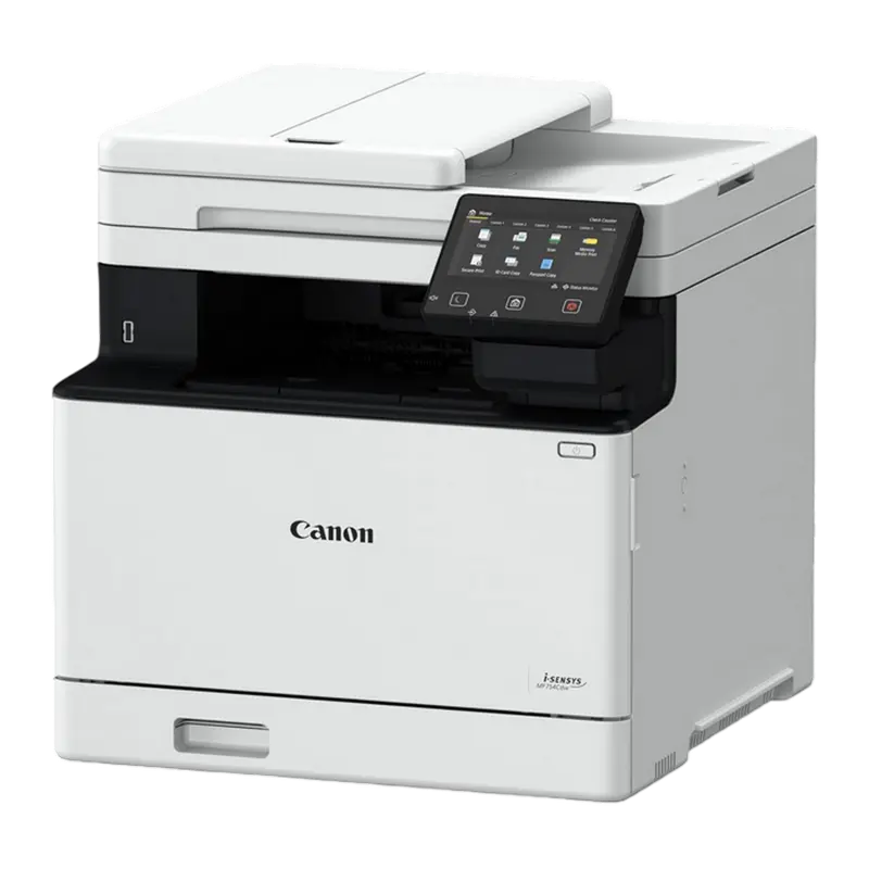 Colour Laser MFD A4: Print, Copy, Scan, Fax, Duplex, DADF 50 sheet Print Speed: Single sided : Up to 33 ppm (A4), Up to 60 ppm(A5-Landscape) Double sided : Up to 29.5 ipm (A4) Printing Method: Colour laser beam printing Print Resolution: Up to 1200 x 1200 dpi Warm-up Time: Approx. 14 seconds or less from power on First-Print-Out Time: Colour approx.: 8.38 seconds or less, Mono approx.: 8.16 seconds or less Printer Languages: UFRII, PCL 5c, PCL6, Adobe® PostScript Fonts: 45 PCL fonts Print Margins: 5 mm-top, bottom, left and right, 10 mm-top, bottom, left and right (Envelope) Toner Saver Mode: Yes Advanced Printing Features: Encrypted Secure Print, Secure Print, Print from USB memory key (JPEG/TIFF/PDF), Print from Cloud (Dropbox, GoogleDrive, OneDrive) (PDF/JPEG), Microsoft Universal Print support, iOS: AirPrint, Canon PRINT app, Android; Mopria certified, Canon Print Service Plug-in, Canon PRINT app, IPP everywhere Copy Speed: Single sided (A4): Up to 33 ppm, Double sided (A4): Up to 29 ipm First-Copy-Out Time: ADF (A4): Colour Approx. 8.8 seconds or less Mono Approx. 7.6 seconds or less Platen (A4): Colour Approx. 9.4 seconds or less Mono Approx. 8.3 seconds or less Copy Resolution: Up to 600 x 600 dpi Copy Modes: Text/Photo/Map (Default),Text/Photo/Map (quality), Printed Image, Text Double Sided Copying: 2-sided to 2-sided (Automatic) Multiple Copies: Up to 999 copies Reduction / Enlargement: 25-400% in 1% increments Scanner Type: Platen, 2-sided ADF (single pass) Scan Resolution: Optical: Up to 600 x 600 dpi, Enhanced: Up to 9600 x 9600 dpi Scan Speed: Single sided mono: 50ipm (300x300dpi) Single sided colour: 40ipm (300x300dpi) Double sided mono: 100ipm (300x300dpi) Double sided colour: 80ipm (300x300dpi) Single sided mono: 40ipm (300x600dpi) Single sided colour: 20ipm (300x600dpi) Double sided mono: 80ipm (300x600dpi) Double sided colour: 40ipm (300x600dpi) Colour Scanning Depth: 24 bit/24 bit (input/output) Greyscales: 256 levels Compatibility: TWAIN , WIA, ICA Maximum Scan Width: 216mm Scan to E-mail, Scan to PC, Scan to USB Memory Key, Scan to FTP, Scan to Cloud, iFAX, Modem Speed 33.6 Kbps (Up to 3 seconds/page) Fax Resolution: Standard: 200 x 100 dpi, Fine: 200 x 200 dpi, Super fine: 200 x 400 dpi, Ultra fine: 400 x 400 dpi Paper Input (Standard): 250-sheet cassette 50-sheet multi-purpose tray 50-sheet ADF Paper Input (Option): 550-sheet cassette Maximum Paper Input Capacity: 850-sheet cassette Paper Output: 150-sheet Media Types: Plain paper, Recycled paper, Heavy Paper, Thin paper, Colour paper, Coated paper, Pre-punched, Label, Post card, Envelope Media Weights: Cassette (standard and optional): 60 to 163 g/m² (Up to 200 g/m² with Coated paper) Multi-purpose tray: 60 to 176 g/m² (Up to 200 g/m² with Coated paper) ADF: 50 to 105 g/m² Double Sided Printing: Automatic, Cassette: A4, A5, B5, Legal, Letter, Executive, OFFICIO, B-OFFICIO, M-OFFICIO, GLTR, GLGL, Foolscap, 16K, Custom size - Min. 148 x 148 mm Max. 216 x 356 mm, 60 to 200 g/m² Recommended Monthly Print Volume: 750 - 4,000 pages per month Duty Cycle: Max. 50,000 pages per month Processor Speed: 1200MHz Memory: 1GB Storage: 4GB Control Panel: 12.7 cm LCD Colour Touch Screen Interface: USB 2.0 Hi-Speed, 10BASE-T/100BASE-TX/1000Base-T, Wireless 802.11b/g/n, Wireless Direct Connection Consumables Cartridges: Cartridge 069 Black (2,100 pages ) Cartridge 069H Black (7,600 pages ) Cartridge 069 Cyan (1,900 pages ) Cartridge 069H Cyan (5,500 pages ) Cartridge 069 Magenta (1,900 pages ) Cartridge 069H Magenta (5,500 pages ) Cartridge 069 Yellow (1,900 pages ) Cartridge 069H Yellow (5,500 pages ) Printer ships with Black: 2,100 pages, C/M/Y: 1,100 pages starter cartridges.