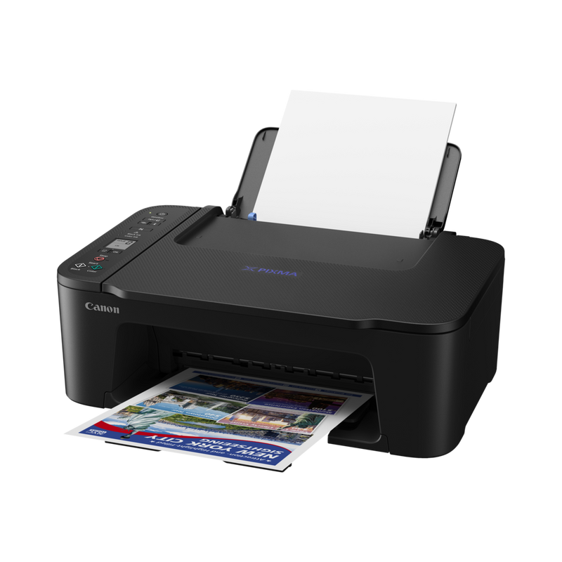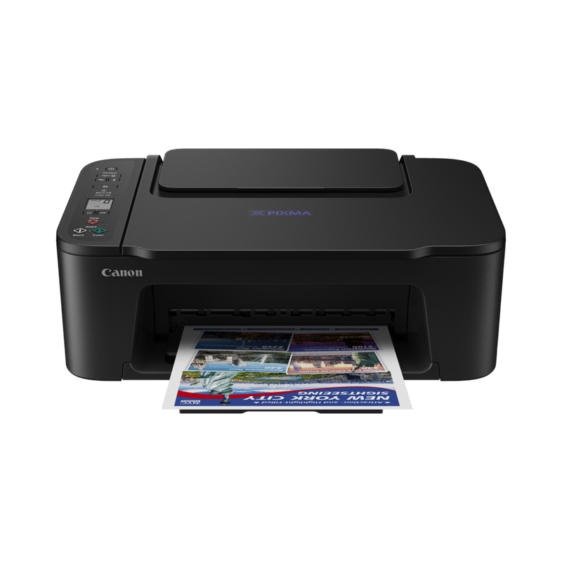 MFD A4, Wi-Fi, Print, Copy, Scan, Cloud Print Resolution: Up to 4800 1 x 1200 dpi Print Technology: 2 FINE Cartridges (Black and Colour) Mono Print Speed: Approx. 7.7 ipm Colour Print Speed: Approx. 4.0 ipm Photo Print Speed: Borderless 10x15cm : Approx. 65 seconds Borderless Printing: Yes (13x18cm, 10x15cm, 13x13cm) Two Sided Printing: No, Manual operation Maximum Paper Input: Rear tray: Max. 60 sheets (plain paper) Paper Weight: Plain paper: 64 - 105 g/m², Canon photo paper: up to 275 g/m² Scanner Type: CIS flatbed photo and document scanner Scanner Resolution (Optical): 600 x 1200 dpi Maximum Document Size: 216 x 297 mm Display Type & Size: 3.7cm LCD segment mono Interface: Hi-Speed USB (B Port), Wi-Fi: IEEE802.11 b/g/n Standard Ink Cartridges: PG-46 (Black), 400 pages CL-56 (Colour), 300 pages
