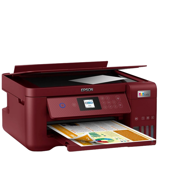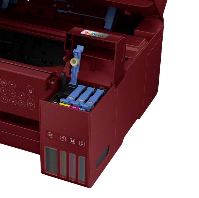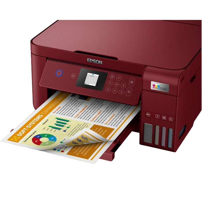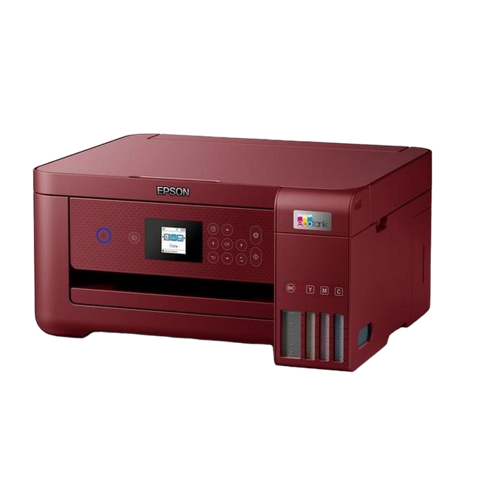 All-in-One Functions: Print, Scan, Copy, Duplex, 3.7cm colour LCD screen Printing Method: Epson Micro Piezo print head Nozzle Configuration: 180 Nozzles Black, 59 Nozzles per Color Minimum Droplet Size: 3 pl, With Variable-Sized Droplet Technology Ink Technology: Pigment black and Dye colour Inks Printing Resolution: 5.760 x 1.440 DPI Category: Home, Office Desktop Number of colours: 4 colour Printing Speed ISO/IEC 24734: 10,5 pages/min Monochrome, 5 pages/min Colour, 69 Seconds per 10 x 15 cm photo Printing Speed: 33 pages/min Monochrome (plain paper 75 g/m²), 15 pages/min Colour (plain paper 75 g/m²), 30 Seconds per 10 x 15 cm photo (Epson Premium Glossy Photo Paper) Duplex Printing Speed ISO/IEC 24734: 6 A4 Pages/min Monochrome, 4 A4 Pages/min Colour Colours: Black [Pigment], Cyan [Dye], Yellow [Dye], Magenta [Dye] Scanner type: Contact image sensor (CIS) Single-sided scan speed (A4 black): 200 DPI; , 11 sec. with flatbed scan Single-sided scan speed (A4 colour): 200 DPI; , 28 sec. with flatbed scan Optical Resolution: 1.200 DPI x 2.400 DPI (Horizontal x Vertical) Output formats: BMP, JPEG, PICT, TIFF, multi-TIFF, PDF, PNG Number of paper trays: 1 Paper Formats: A4 (21.0x29.7 cm), A5 (14.8x21.0 cm), A6 (10.5x14.8 cm), B5, C6 (Envelope), DL (Envelope), No. 10 (Envelope), Letter, 10 x 15 cm, 13 x 18 cm, 16:9, User defined, Legal Duplex: Yes Output Tray Capacity: 30 Sheets Paper Tray Capacity: 100 Sheets Standard Compatible Paper Weight: 64 g/m² - 300 g/m² Media Handling: Automatic duplex (A4, plain paper), Borderless Print Interfaces: USB, WiFi, Wi-Fi Direct Colour: Red Consumables: C13T03V14A, 101 EcoTank Black ink bottle, 127 ml C13T03V24A, 101 EcoTank Cyan ink bottle, 70 ml C13T03V34A, 101 EcoTank Magenta ink bottle, 70 ml C13T03V44A, 101 EcoTank Yellow ink bottle, 70 ml