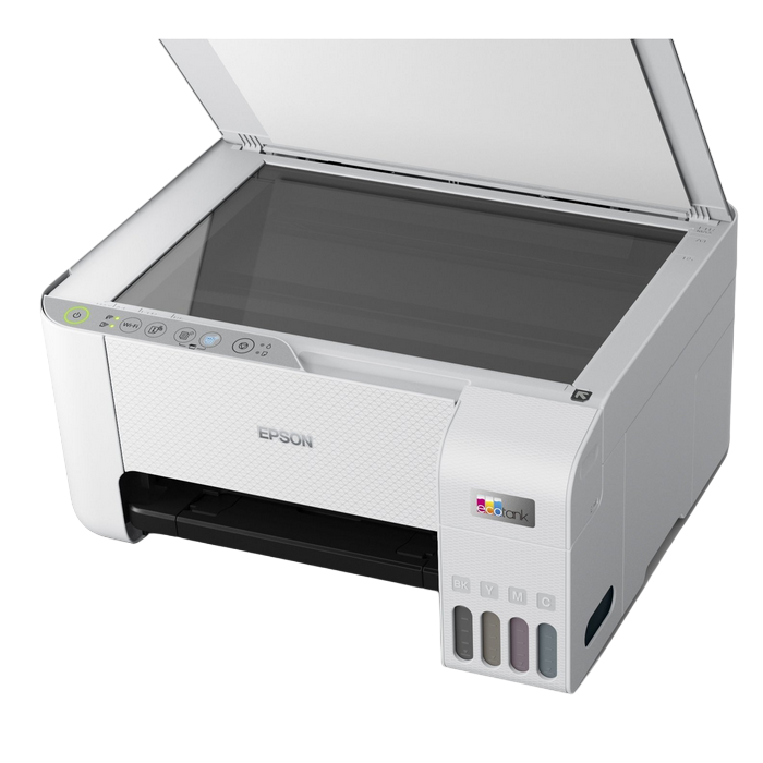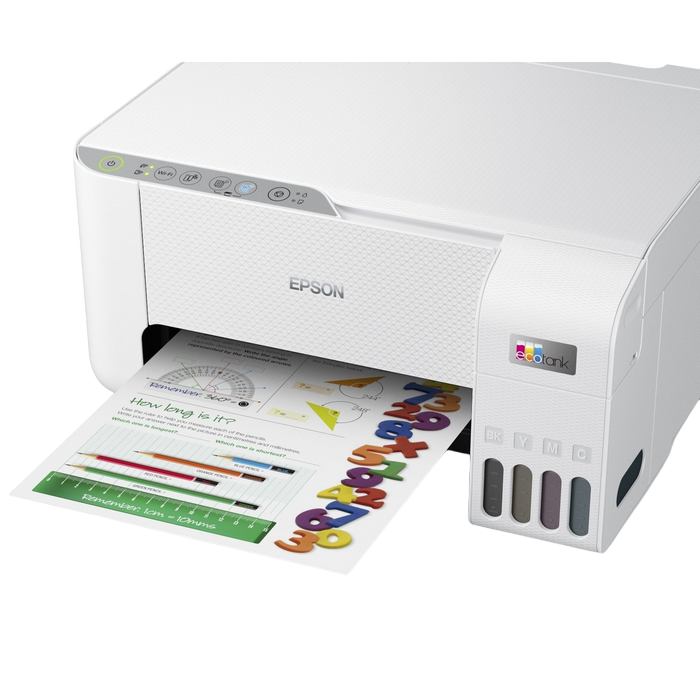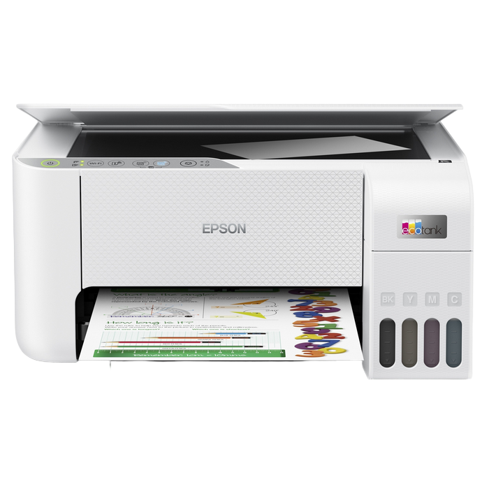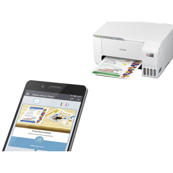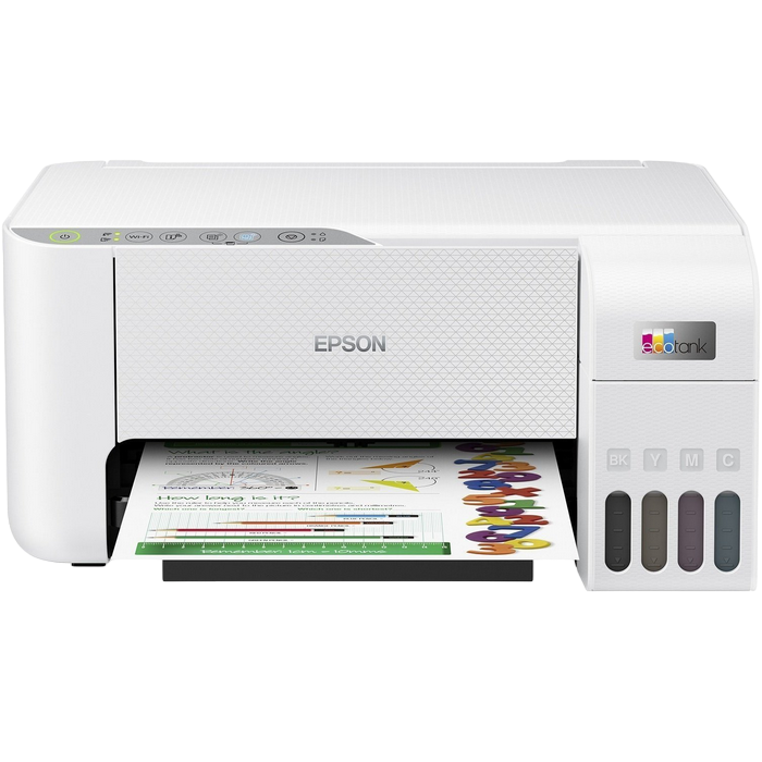 All-in-One Functions: Print, Scan, Copy, A4 Colour: White Printing Method: Epson Micro Piezo™ print head Nozzle Configuration: 180 Nozzles Black, 59 Nozzles per Color Minimum Droplet Size: 3 pl, With Variable-Sized Droplet Technology Ink Technology: Dye Ink Printing Resolution: 5.760 x 1.440 DPI Number of colours: 4 colour Printing Speed ISO/IEC 24734: 10 pages/min Monochrome, 5 pages/min Colour, 69 Seconds per 10 x 15 cm photo Printing Speed: 33 pages/min Monochrome (plain paper 75 g/m²), 15 pages/min Colour (plain paper 75 g/m²), 27 Seconds per 10 x 15 cm photo (Epson Premium Glossy Photo Paper) Scanner type: Contact image sensor (CIS) Single-sided scan speed (A4 black): 200 DPI;11 sec. with flatbed scan Single-sided scan speed (A4 colour): 200 DPI; 28 sec. with flatbed scan Optical Resolution: 1.200 DPI x 2.400 DPI (Horizontal x Vertical) Output formats: BMP, JPEG, PICT, TIFF, multi-TIFF, PDF, PNG Optical Resolution: 1.200 DPI x 2.400 DPI (Horizontal x Vertical) Paper Formats: A4 (21.0x29.7 cm), A6 (10.5x14.8 cm), A5 (14.8x21.0 cm), B5, 10 x 15 cm, 13 x 18 cm, 16:9, DL (Envelope), No. 10 (Envelope), C6 (Envelope), Letter, User defined, Legal Duplex: No Paper Tray Capacity: 100 Sheets Standard, 20 Photo Sheets Output Tray Capacity: 30 Sheets Compatible Paper Weight: 64 g/m² - 300 g/m² Media Handling: Borderless print (up to 10 x 15cm) Interfaces: USB, WiFi, Wi-Fi Direct Consumables: C13T00S14A, 103 EcoTank Black ink bottle, 65 ml C13T00S24A, 103 EcoTank Cyan ink bottle, 65 ml C13T00S34A, 103 EcoTank Magenta ink bottle, 65 ml C13T00S44A, 103 EcoTank Yellow ink bottle. 65 ml