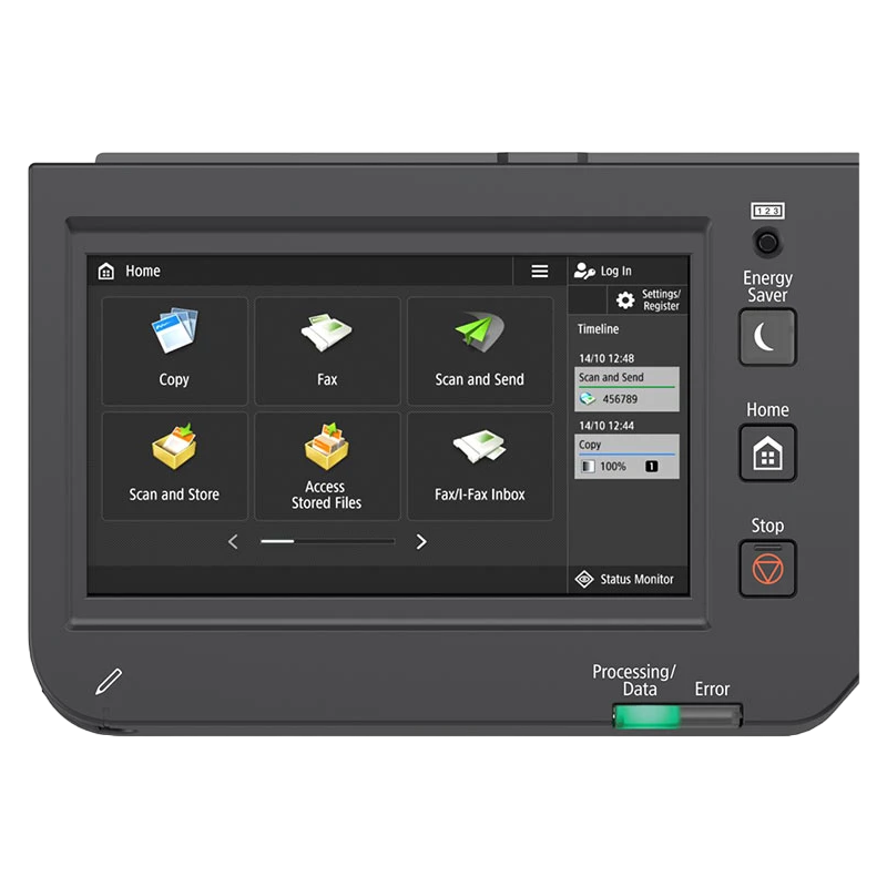 Monochrome A3 Laser Multifunctional Required options: 147 501 Plain Pedestal Type S3 Standard: Document Feeder DADF-AZ1, up to 50 sheets Print, Copy, Scan, Send and Optional Fax Print Speed: Up to 30 ppm (A4, A5, A5R, A6R), Up to 15 ppm (A3), Up to 20 ppm (A4R) Print Resolution (dpi): Up to 1200 x 1200 Page Description Languages: Standard: UFRII, PCL6, Optional: Adobe® PostScript®3TM Double-Sided Printing: Yes Direct Print: PDF, EPS, TIFF/JPEG, XPS Copy Speed: Up to 30 ppm (A4, A5, A5R, A6R), Up to 15 ppm (A3), Up to 20 ppm (A4R) First-Copy-Out Time: 7 seconds Copy Resolution (dpi): 600 x 600 Multiple Copies: up to 999 copies Copy Density: Automatic or Manual (9 Levels) Magnification: 25% - 400% (1% Increments) Preset Reductions: 25%, 50%, 70%, 100% (1:1), 141%, 200%, 400% Preset Enlargements: 25%, 50%, 70%, 100% (1:1), 141%, 200%, 400% Scan Type: Color Scanner Scan Speed: 1-sided Scanning: 35/25 (300 x 300 dpi, send), 25/- (600 x 600 dpi, copy) 2-sided Scanning: 12/8 (300 x 300 dpi, send), 8/- (600 x 600 dpi, copy) Double-Sided Scanning: Yes Scan Resolution (dpi): Scan for Copy: 600 x 600 Scan for Send: (Push) 600 x 600 (SMB/FTP/WebDAV/IFAX), (Pull) 600 x 600 Scan for Fax: 600 x 600 Document Feeder Paper Capacity (80 gsm): up to 50 sheets Acceptable Originals/Weights: Platen: Sheet, Book, 3-Dimensional Objects Document Feeder sheet media weight: 1-sided scanning: 38 to 128 gsm (BW/CL) 2-sided scanning: 52 to 128 gsm (BW/CL) Processor Speed: 1.6GHz Dual Core Processor Control Panel: Standard: 7 inch TFT LCD WVGA Colour Touch panel Memory: Standard: 2.0GB RAM Storage: Standard: 64GB eMMC, Optional: 256GB SSD Interface Connection: NETWORK Standard: 1000Base-T/100Base-TX/10-Base-T, Wireless LAN (IEEE 802.11 b/g/n), Wi-Fi Direct Connection OTHERS Standard: USB 2.0 (Host) x2, USB 2.0 (Device) x1 Paper Supply Capacity (A4, 80 gsm): Standard: 1,200 sheets Maximum: 2,300 sheets (with Cassette Feeding Unit-AW1) Paper Output Capacity (A4, 80 gsm): Standard: 250 sheets Maximum: 645 sheets (with Inner Finisher-L1 and Copy Tray-T2) Supported Media Weights: Main Body Cassette (Upper/Lower): 52 to 256 gsm, Multi-purpose tray: 523 to 300 gsm, Duplex: 52 to 220 gsm Warm-up Time: 4 Seconds or Less, From Sleep Mode: 10 seconds or less, From Power On: 10 Seconds or Less Consumables: To be ordered separately: Toner C-EXV 67 Black, 33,000 pages (A4) (Estimated 6% coverage)