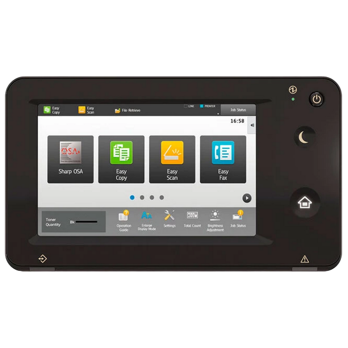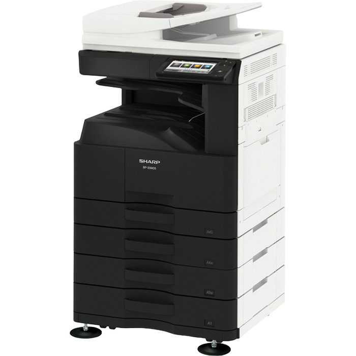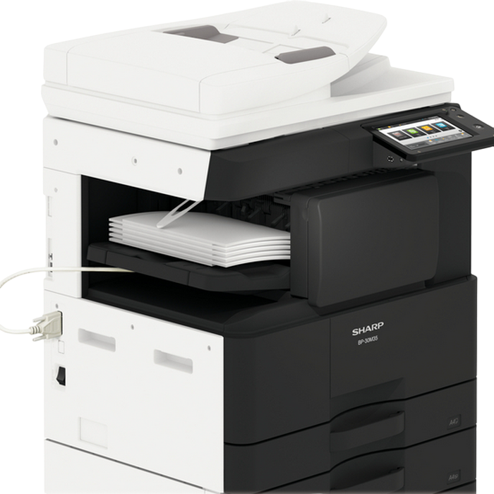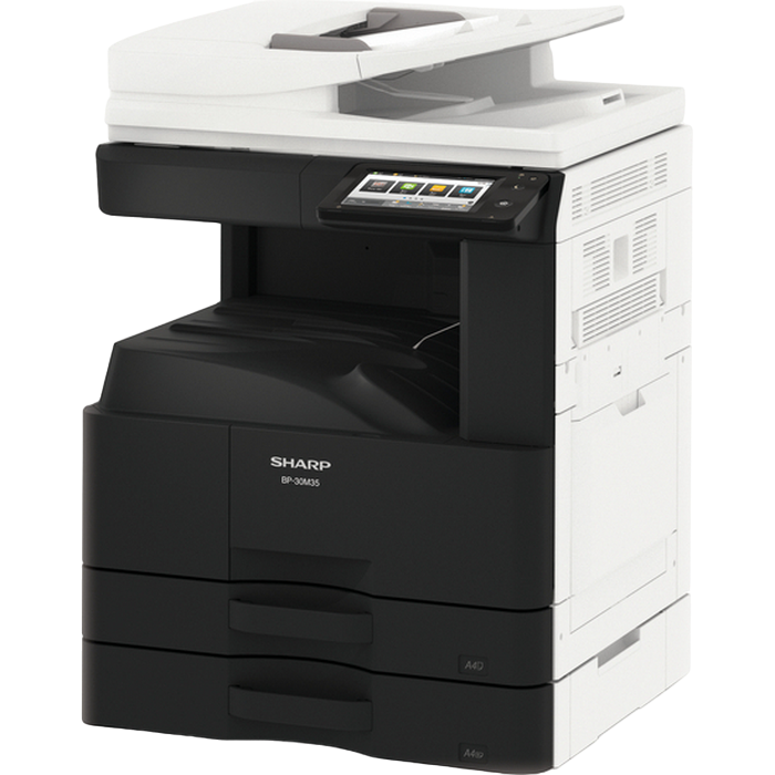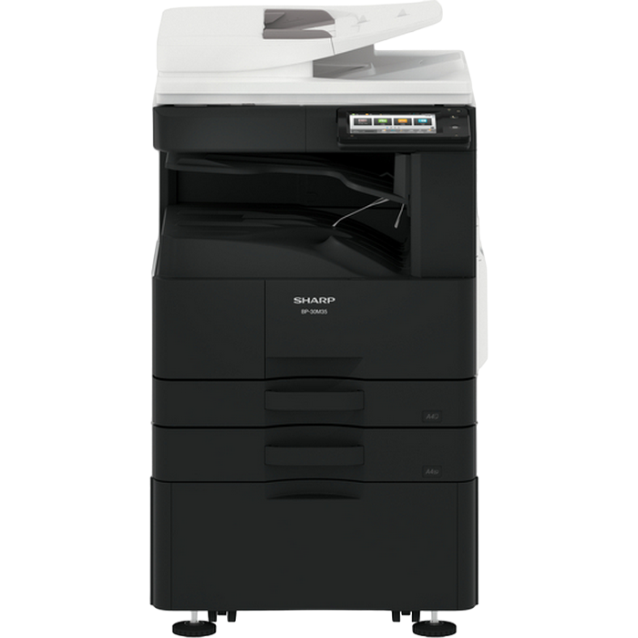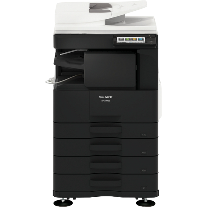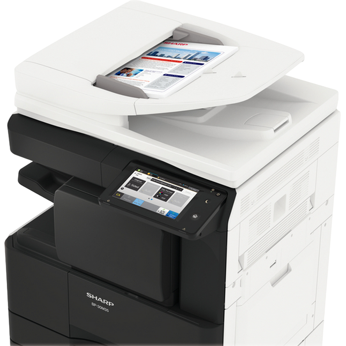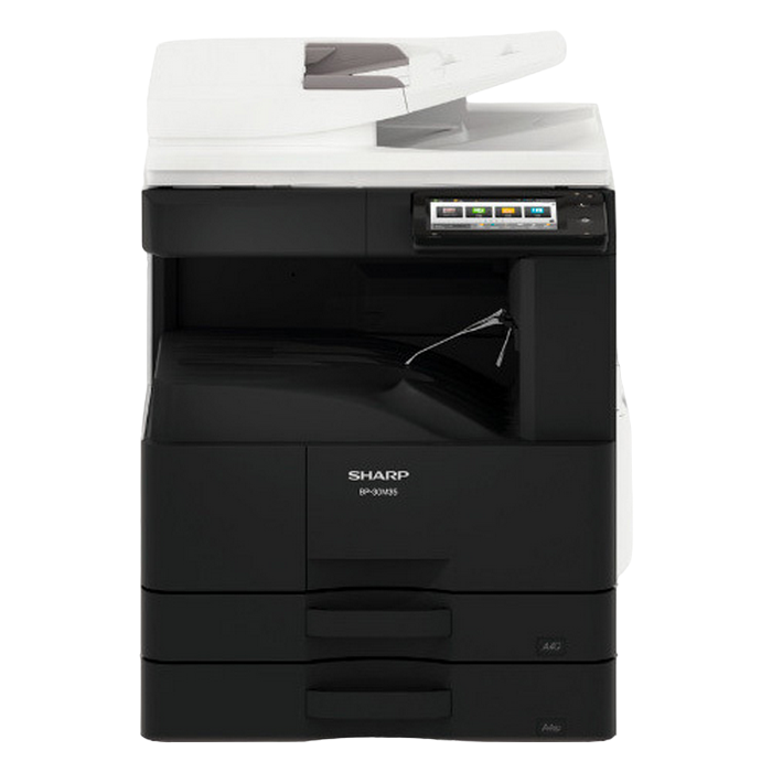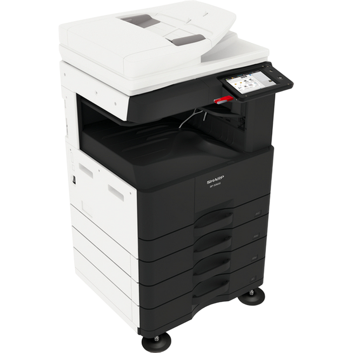 Monochrome A3 Laser Multifunctional Required options: 205 107 Cassette Feeding Module Sharp BP-DE11 (stand with 2x500-sheet) or 140 880 High stand Sharp BP-DS12 or 140 881 Low stand Sharp BP-DS13 Print, Copy, Scan, Optional Fax Standard: Reversing Single Pass Feeder ( RSPF ), 100 sheets Print speed: 28 ppm (A4) B/W, 17 ppm (A3) B/W Duplex Print Standard Print Resolution: 600x600 dpi, 1200x600 dpi Paper weight: 55 - 200 (g/m2) Paper capacity: Standard 1100 sheets, Maximum 2100 sheets Memory general: 4 GB SSD Capacity: 128 GB Standard/ 512 GB Optional Network Scanner: Standard Scan method Push scan and Pull scan Scan speed: 1- sided: 60 ppm, 2- sided: 23 ppm Resolution push scan: 100, 150, 200, 300, 400, 600 dpi Resolution pull scan: 75, 100, 150, 200, 300, 400, 600, 50 - 9600 dpi File formats: Standard TIFF, PDF, PDF/A-1b, encrypted PDF, JPEG, XPS Scan destinations Desktop, FTP, Email, Network folder, USB memory Customisable, 7-inch colour LCD touchscreen Interface Standard: USB2.0,10Base-T/100Base-TX/1000Base-T Optional: Secondary LAN support, Wireless LAN IEEE 802.11 b/g/n Standard: PCL 6, Optional: Genuine Adobe PostScript 3. Consumables: BP-GT300, Black toner 27,500 yield (6%) BP-GV200, Black developer 100 000 pg MX-312DU, Drum 100 000 pg Included in the box: MFD, Drum NOT included in the box: Toner BP-GT300, Developer BP-GV200