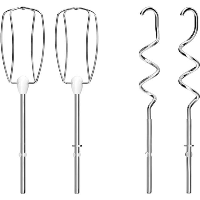 , 450W power output, 5 speed levels plus turbo level, 2x dough hook, 2x beater, white