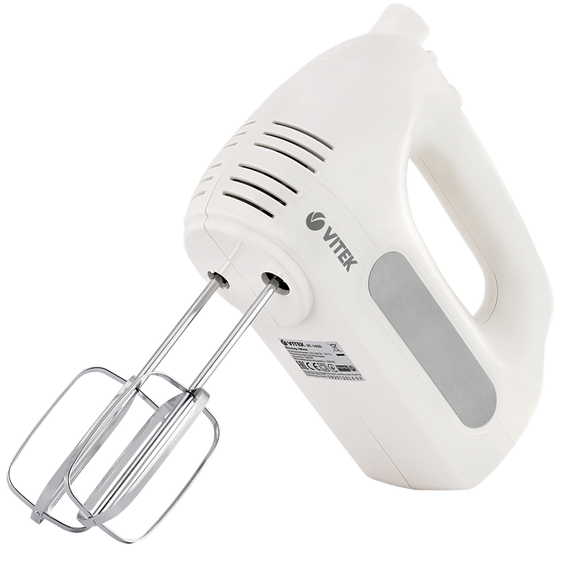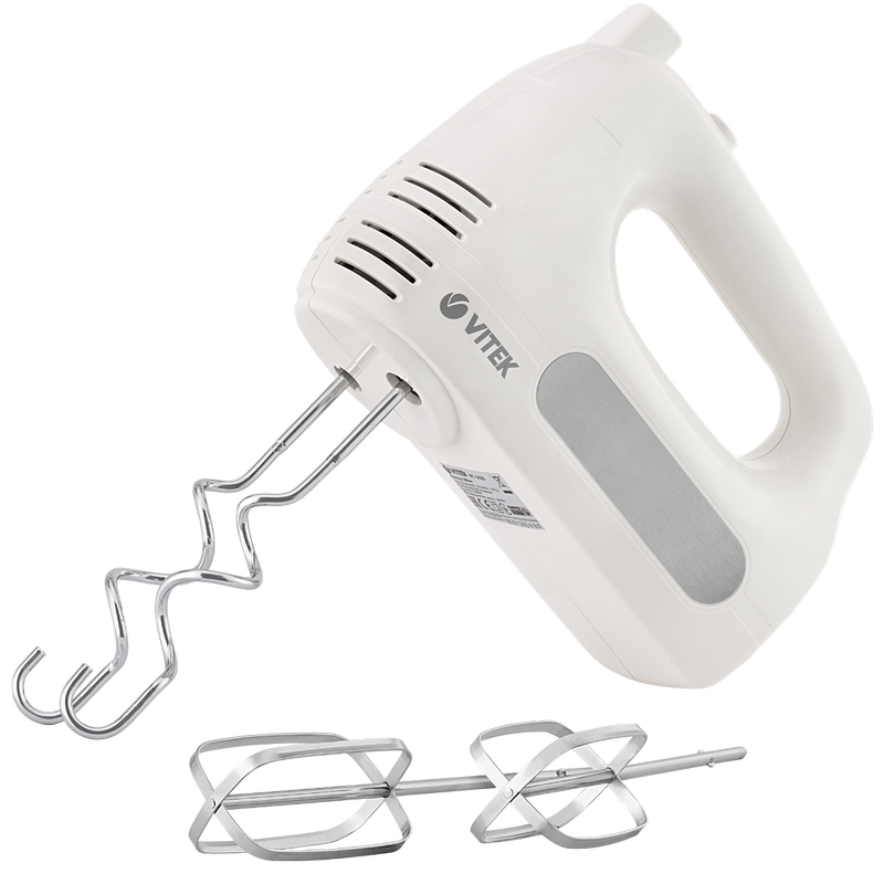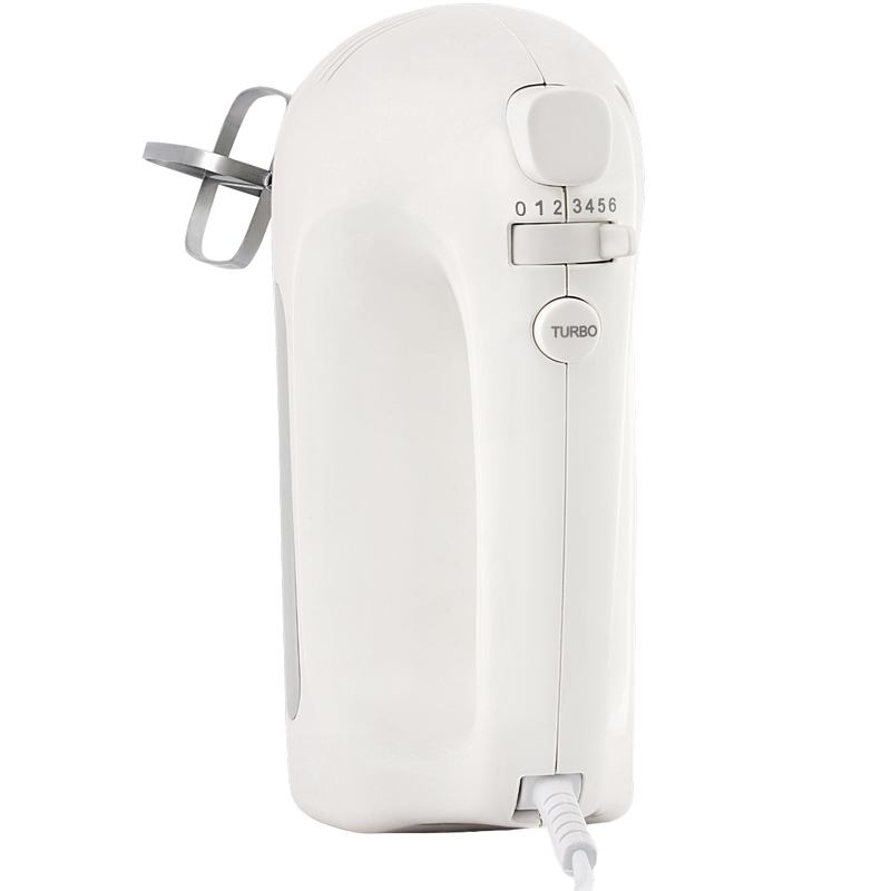 , 500W power output, 6 speed levels plus turbo level, 2x dough hook, 2x beater, white