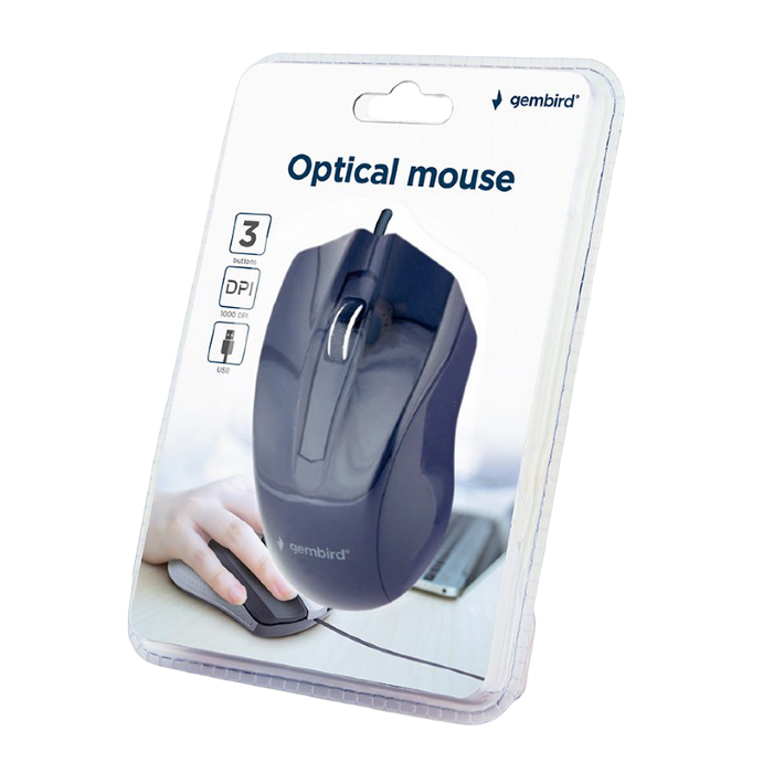 . 3-х кнопочная оптическая мышь Разрешение оптики мыши: 1000 точек на дюйм Работает на большинстве поверхностей без коврика Interface: USB, 1.35m cable Optical resolution: 1000 DPI Power consumption: 5 V DC up to 5 mA Dimensions: 116*64*37mm Net weight: 69g https://gembird.nl/item.aspx?id=10425