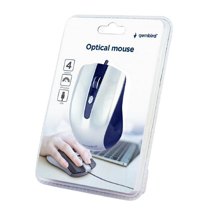 Mouse Gembird MUS-4B-01-BS, Optical, 800-1200 dpi, 4 buttons, Ambidextrous, Black/Silver, USB
