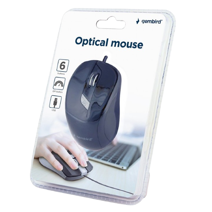 . 6-х кнопочная оптическая мышь Разрешение оптики мыши: 400 - 1600 точек на дюйм Работает на большинстве поверхностей без коврика Interface: USB, 1.35 m cable Optical resolution: 400-800-1200-1600 DPI Power consumption: 5 V DC up to 5 mA Dimensions: 110*68*38mm Net weight: 74g https://gembird.nl/item.aspx?id=10429