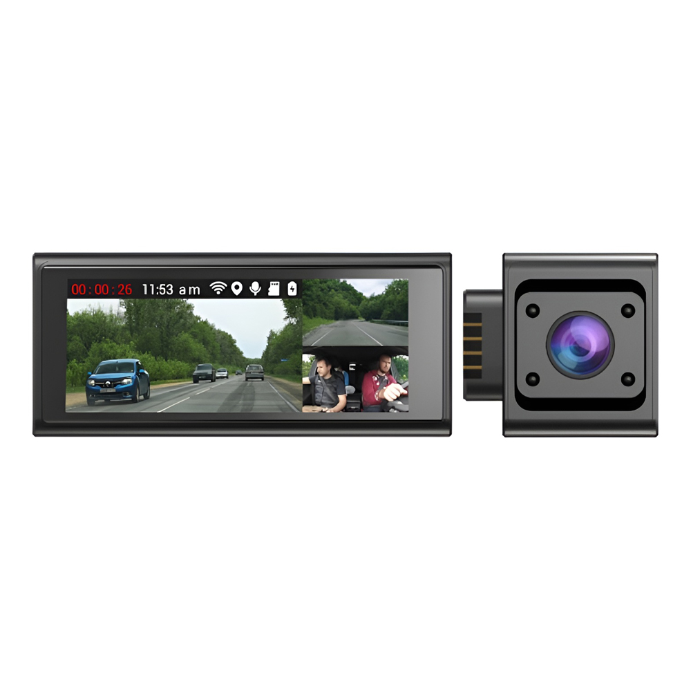 Inregistrare duala: Captureaza simultan evenimentele din fata si din spatele masinii, oferind o perspectiva completa asupra drumului.