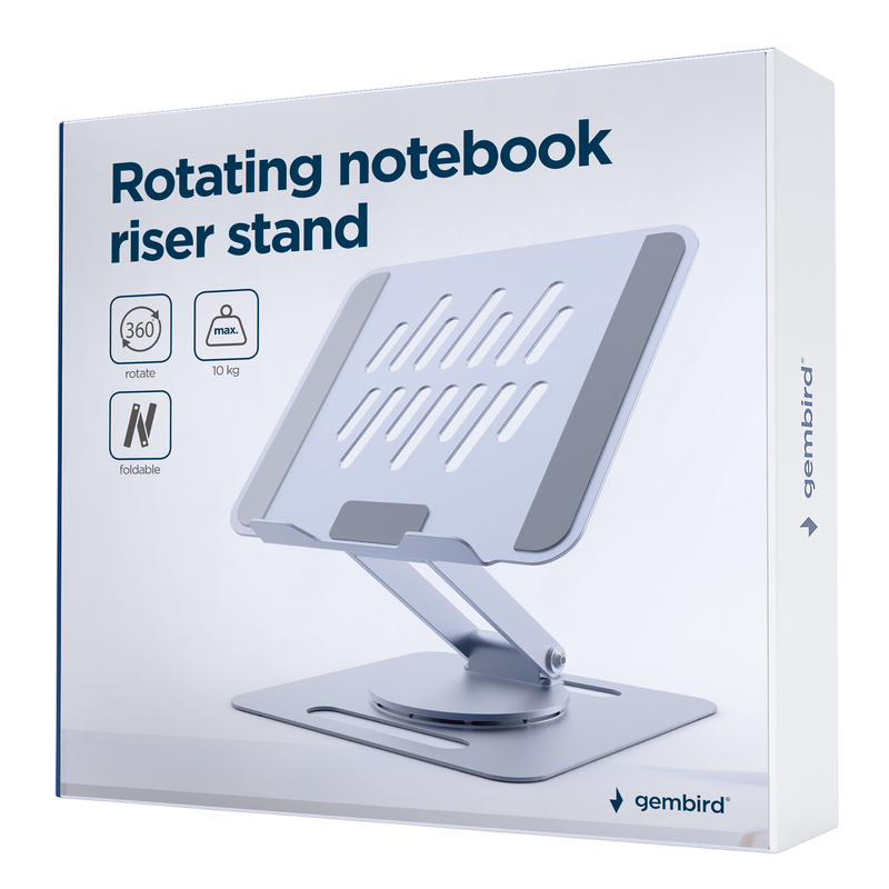 Notebook Rotating Riser Gembird NBS-DR1-01, up to 15.6'', Aluminum, Foldable, Silicone pad, up to 10kg, Height/Angle adjustment, Silver