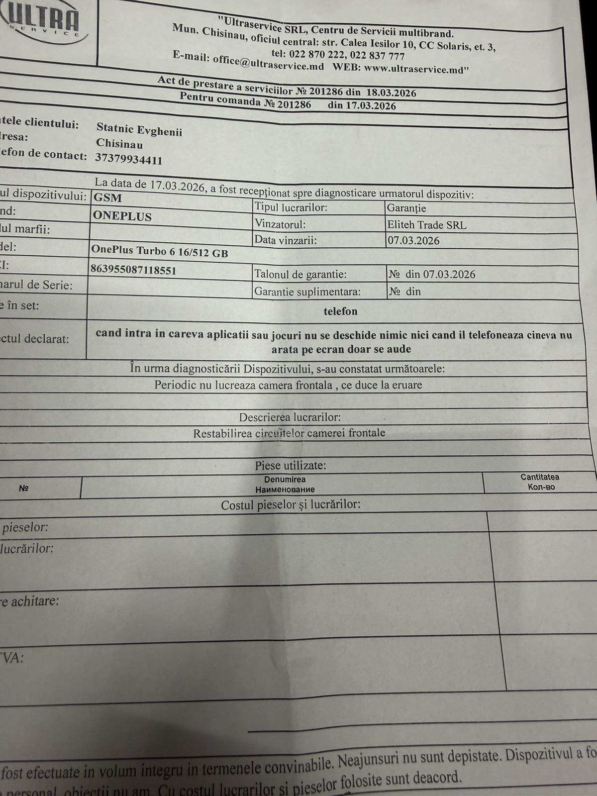 Restabilirea circuitelor camerei frontale, mici zgarieturi