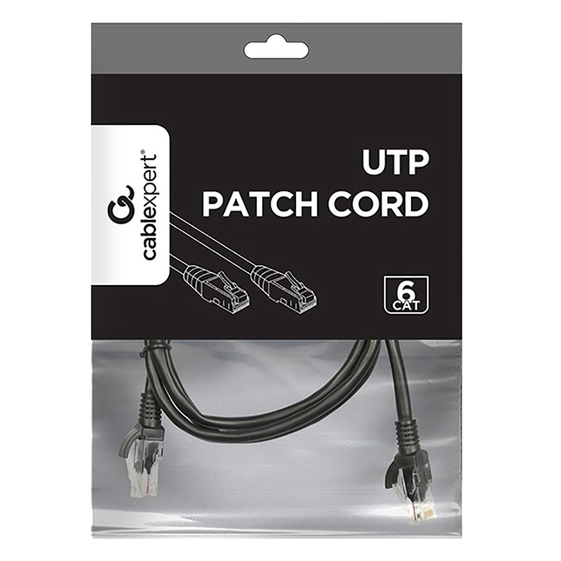 Patch Cord Cat.6U 1m, Black, PP6U-1M/BK, Cablexpert, Stranded Unshielded