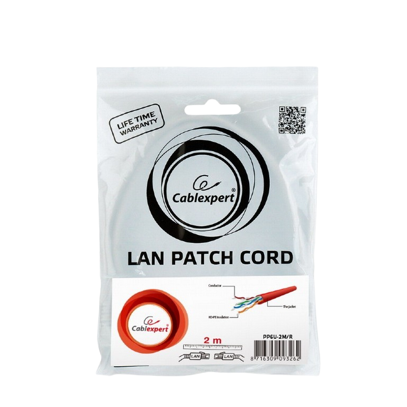 Patch Cord Cat.6U 2m, Red, PP6U-2M/R, Cablexpert, Stranded Unshielded