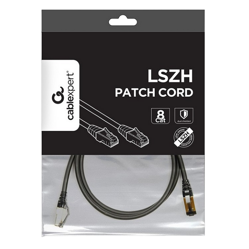 Patch Cord Cat.8 1.0m, Black, PP8-LSZHCU-BK-1M, Cablexpert, Low Smoke Zero Halogen (LSZH)