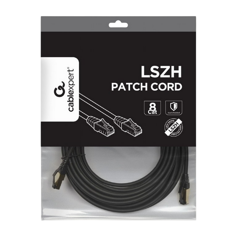Patch Cord Cat.8 7.5m, Black, PP8-LSZHCU-BK-7.5M, Cablexpert, Low Smoke Zero Halogen (LSZH)