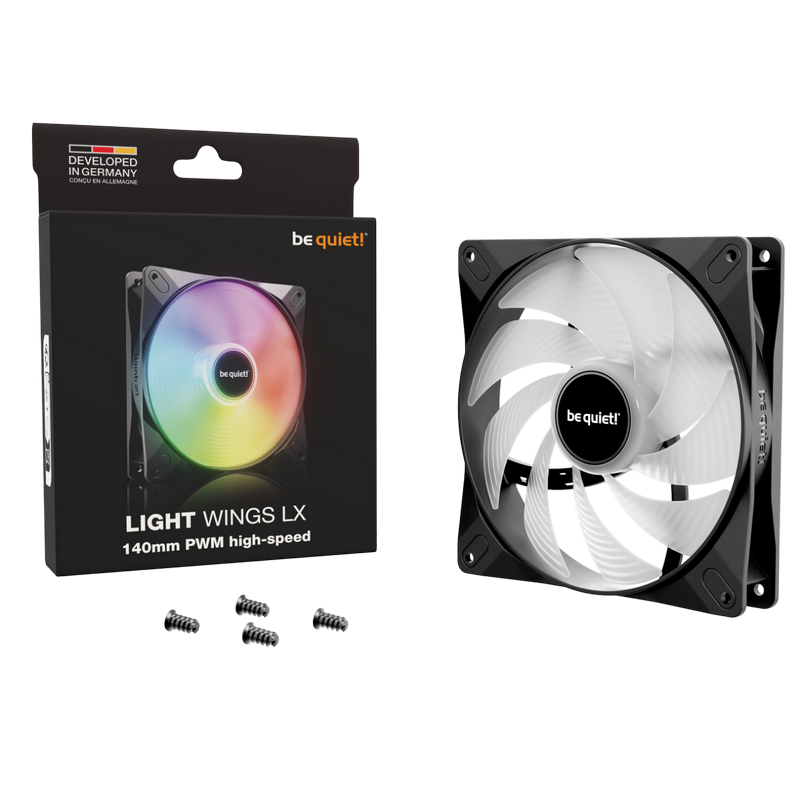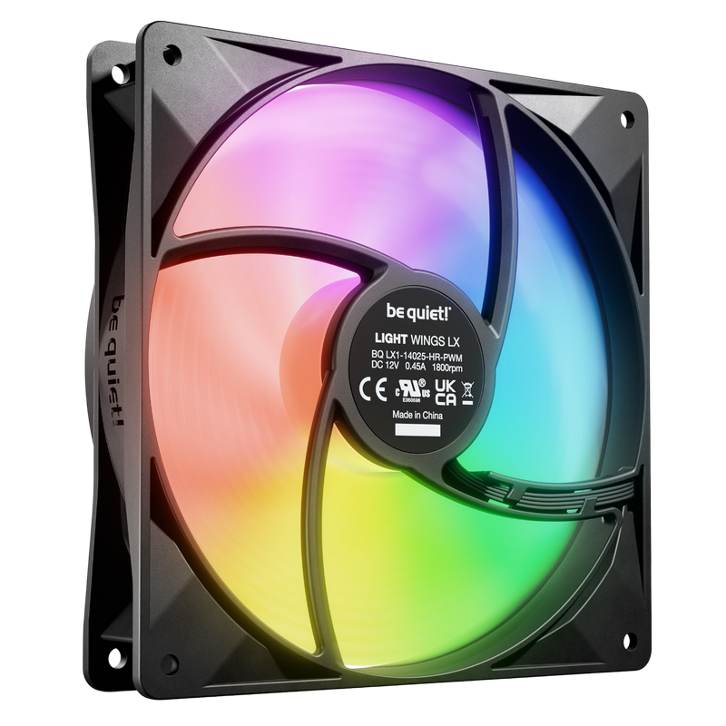 PC Case Fan be quiet! Light Wings LX, 140x140x25 mm, <22.9db, 56 CFM, 1200RPM, 7 blades, Rifle bearing, ARGB, 16 LEDs, PWM, 4pin, Black