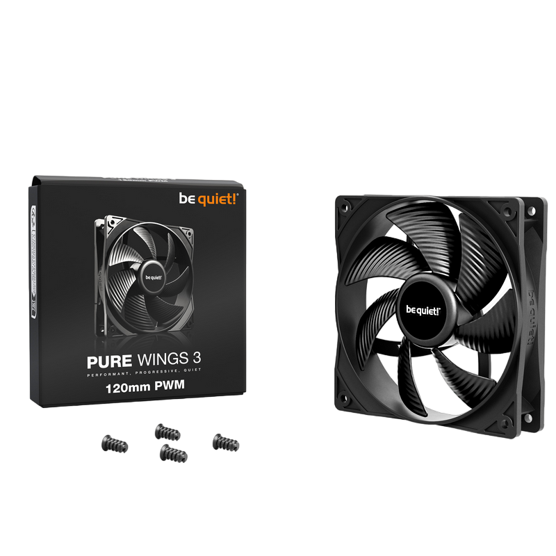 PC Case Fan be quiet! Pure Wings 3, 120x120x25 mm, <25,5db, 49,9 CFM, 1600RPM, 7 blades, Rifle bearing, PWM, 4pin, Black