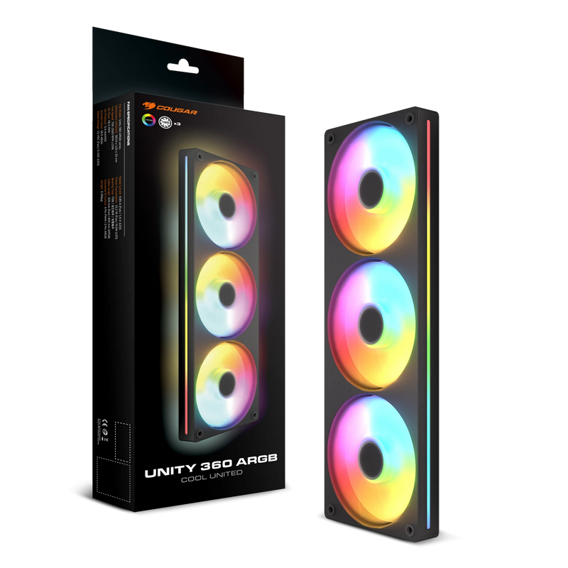 PC Case Fan Cougar Unity360-RB, Cooling kit, 3x120mm ARGB, 363.3x125x25mm, 700-1600 RPM, 33.5 dBA, 49 CFM, PWM, Black
