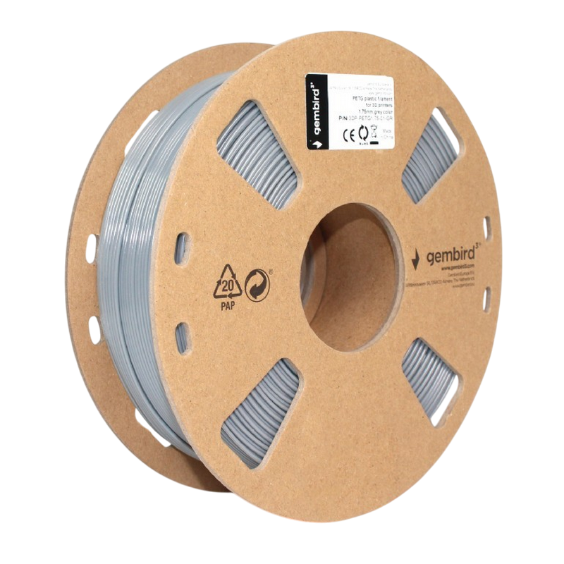 PETG 1.75 mm, Gembird Gray Filament, 1 kg, 3DP-PETG1.75-01-GR