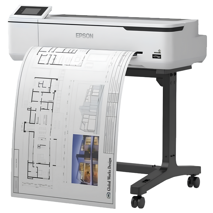 24" large format wireless printer with stand. Paper Formats: A1, A2, A2+, A3+, A3, A4, B1, B2, B3, B4, B5, 17 " (43.2 cm), 24 " (61.0 cm) Print Margins Sheet Media: Mode 1: 3 mm (top), 3 mm (right), 3 mm (bottom), 3 mm (left) Print Margins Roll Media: Mode 1: 3 mm (top), 3 mm (right), 3 mm (bottom), 3 mm (left) Automatic Document Feed - Standard (built-in) Compatible Paper Thickness: 0.05 mm - 0.27 mm Media Handling: Auto Sheet Feeder, Auto cutter, Roll Paper Printing Resolution: 2,400 x 1,200 DPI Colours: Black, Cyan, Yellow, Magenta (all pigment) Minimum Droplet Size: 4 pl, With Variable-Sized Droplet Technology Printer Memory: 1 GB Emulations: ESC/P-R, HP-GL2, RTL Interfaces: USB 3.0, Gigabit ethernet interface, Wireless LAN IEEE 802.11b/g/n, Wi-Fi Direct LCD Panel Type: Color, Touchscreen, Diagonal: 10.9 cm Supported Scanner Conections Standard equipment: Stand, Individual Ink Cartridges (Bk-50ml, CMY-26ml), Maintenance Tank, Paper stacker Optional Cosumables: UltraChrome XD2 Black T40C140(50ml), C13T40C140 UltraChrome XD2 Cyan T40C240(26ml), C13T40C240 UltraChrome XD2 Magenta T40C340(26ml), C13T40C340 UltraChrome XD2 Yellow T40C440(26ml), C13T40C440 UltraChrome XD2 Black T40D140(80ml), C13T40D140 UltraChrome XD2 Cyan T40D240(50ml), C13T40D240 UltraChrome XD2 Magenta T40D340(50ml), C13T40D340 UltraChrome XD2 Yellow T40D440(50ml), C13T40D440 Maintenance box, C13S210057