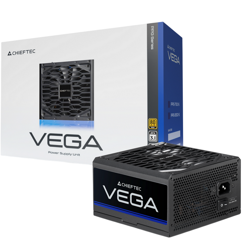 . PN: PPG-750-S TECHNICAL DATA Model Vega 750W Article no. PPG-750-S EAN code 0753263078780 Weight (without/with package) 1.96kg / 2.46kg AC Input 100-240V~ / 10-5A Frequency 50 - 60Hz +5V 20A +3,3V 20A +5V & +3,3V combined 100W +12V1 62.5A +12V2 - +12V1, +12V2 combined 750W P.F. >0.9 -12V 0.3A / 3.6W +5VSB 3.0A / 15W Maximum Power 750W Connectors 20+4 PIN ATX 1 8 PIN EPS (8/4+4) 1/1 8 PIN PCIe (6+2) 4 16 PIN PCIe GEN5 1 SATA 6 MOLEX 3 Cable length (mm) 20+4 PIN ATX 600 8 PIN EPS (4+4) 2 x 650/150 8 PIN PCIe (6+2) 2 x 600/150 16 PIN PCIe GEN5 600 SATA 2 x 400/150/150 MOLEX 400/150/150 Features ATX12V Version ATX 12V 3.1 Efficiency 80Plus Gold Dimension (DxWxH) 150 mm x 150 mm x 85 mm PFC Active PFC (0.9) Fan 135mm FDB fan Security AFC (Automatic Fan Speed Control) OPP (Overload Protection) OTP (Over Temperature Protection) OVP (Overvoltage Protection) SCP (Short-Circuit Protection) SIP (Surge & Inrush Protection) UVP (Under Voltage Protection) OCP (Over-Current Protection)