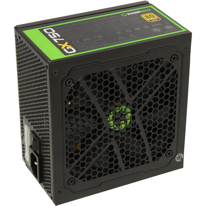 Power Supply ATX 750W GAMEMAX GX-750, 80+ Gold, 120mm, Active PFC, LLC+DC/DC, Temperature control fan, Full Modular, Black