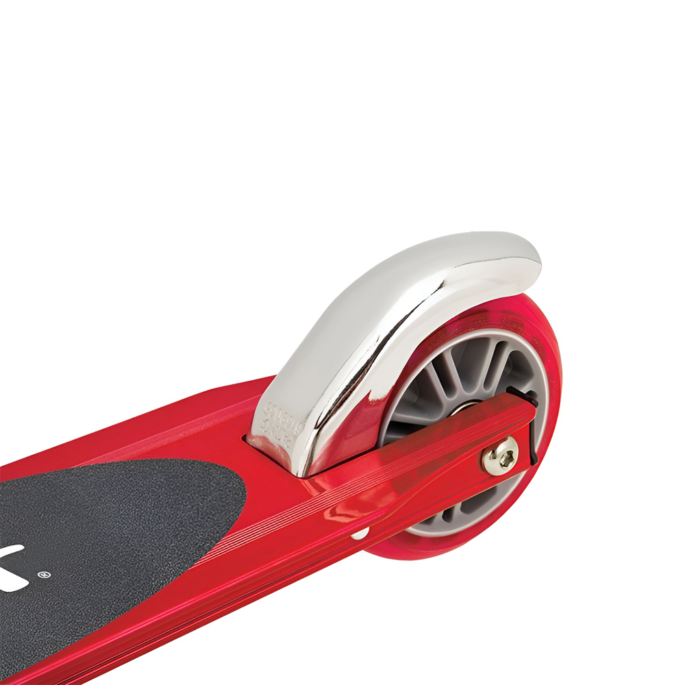 Designul este completat de un finisaj anodizat in culori vii, modelul prezentat fiind rosu. Aspectul modern si atractiv contribuie la popularitatea sa in randul celor mici.