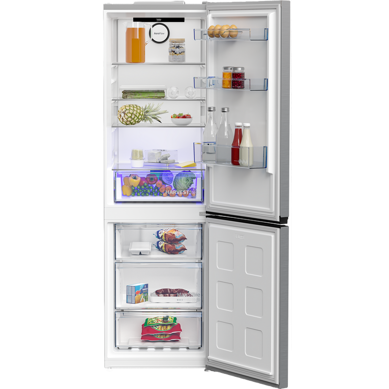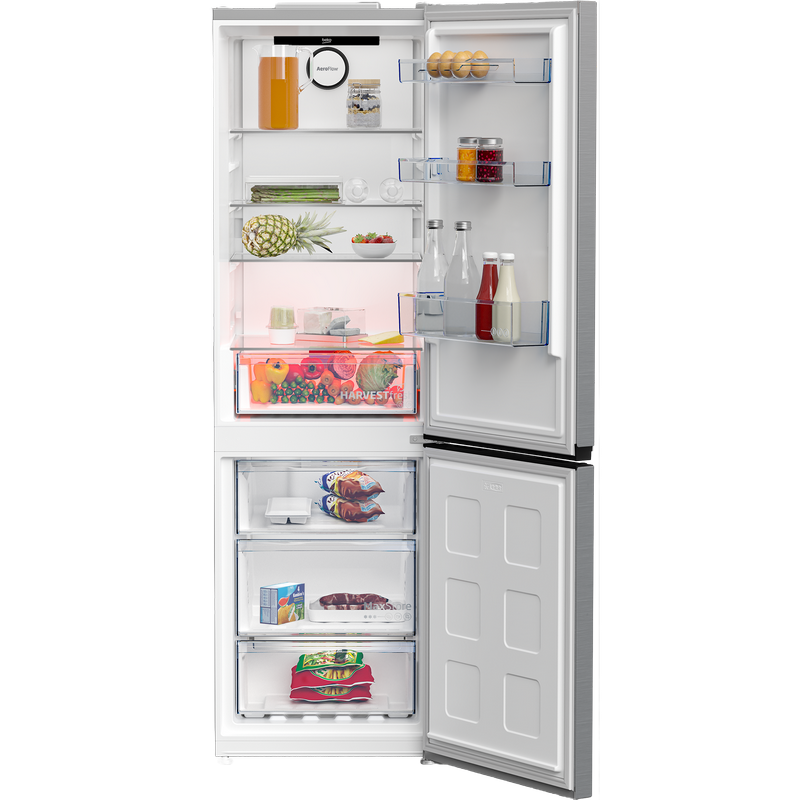 Tip instalare: Independentă Camere: Frigider, Congelator Sistem dezghețare frigider: No Frost Sistem dezghețare congelator: No Frost Clasa de eficiență energetică: E Volumul total util: 316 L Lăţime : 59,5 cm Înălţime : 186,5 cm Adâncime : 66,3 cm