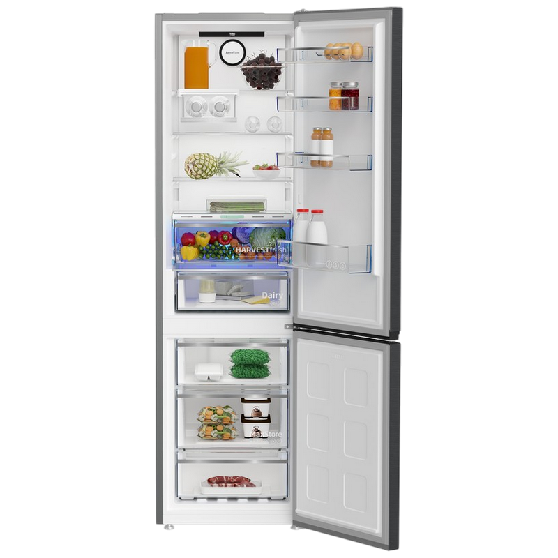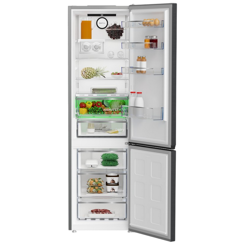 Tip instalare: Independentă Camere: Frigider, Congelator Sistem dezghețare frigider: No Frost Sistem dezghețare congelator: No Frost Clasa de eficiență energetică: D Volumul total util: 355 L Lăţime : 59,5 cm Înălţime : 203,5 cm Adâncime : 66,3 cm