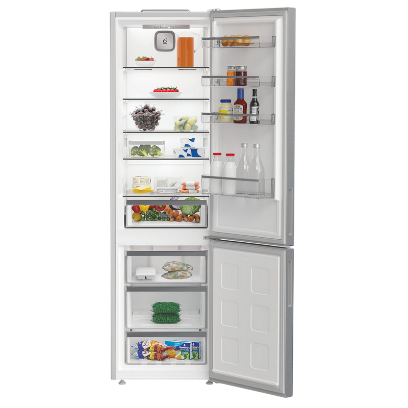 Tip instalare: Independentă Camere: Frigider, Congelator Sistem dezghețare frigider: No Frost Sistem dezghețare congelator: No Frost Clasa de eficiență energetică: D Volumul total util: 355 L Lăţime : 59,5 cm Înălţime : 203,5 cm Adâncime : 66,3 cm