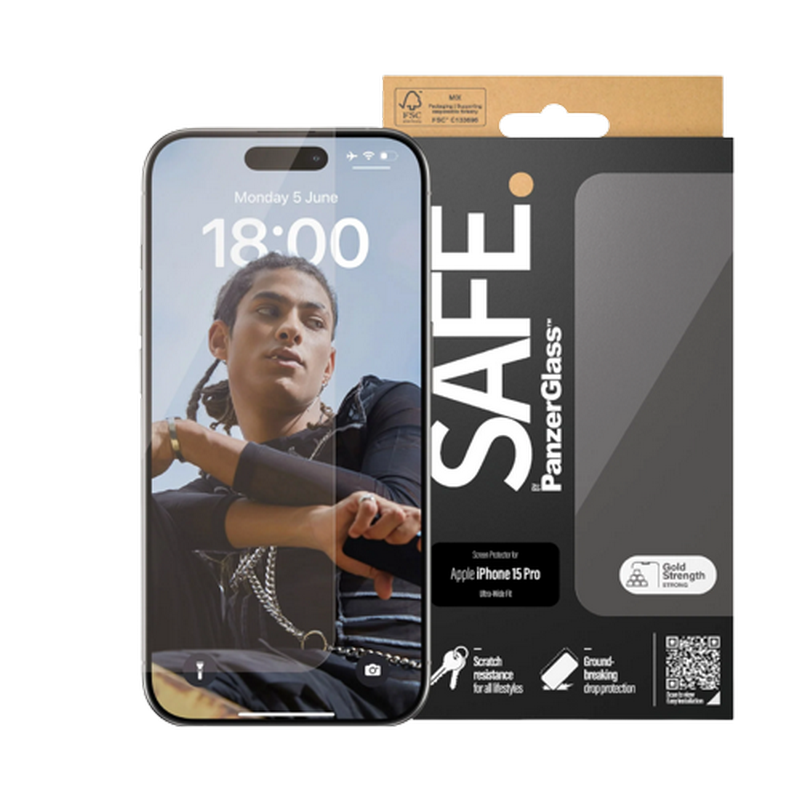 SAFE. by PanzerGlass Apple iPhone 15 Pro ULTRA-WIDE FIT, Tempered Glass, Transparent